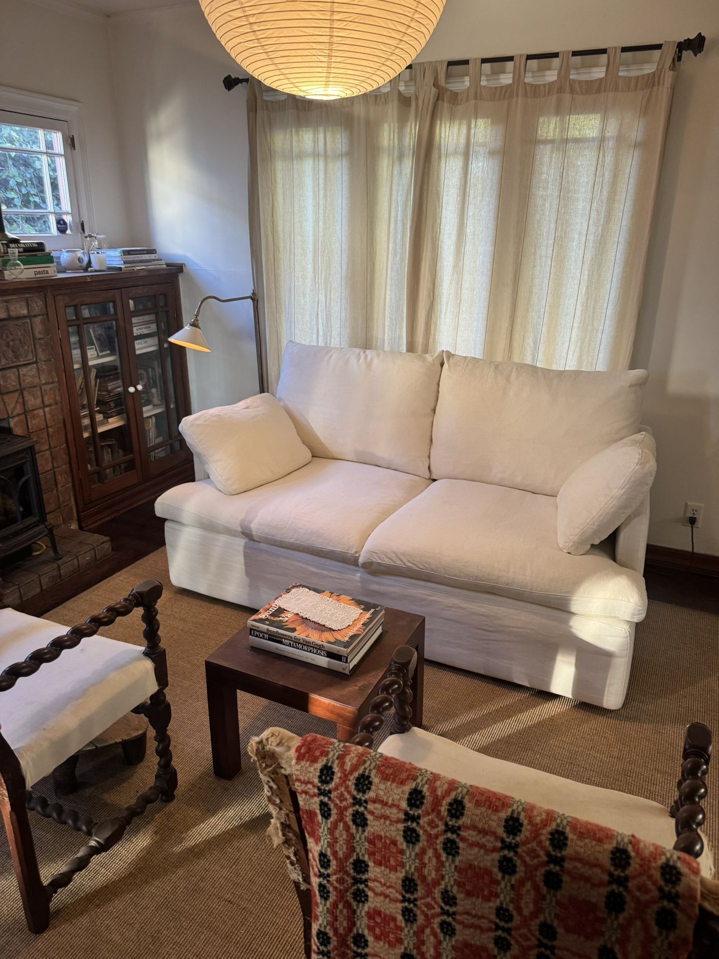 Restoration Hardware Cloud Couch Track Arm Width: 6’ Depth: Classic 40” Fabric: Belgian Linen Color: Natural Pre owned, near mint condition, heavily discounted Cloud Couch by RH. Zero stains or snags. Purchased brand new from Pasadena flagship. We are now moving and need to sell. Couch has been protected with a linen coverlet since first use. Retail: 2x installments equalling $7,393.65 after taxes, fees, delivery