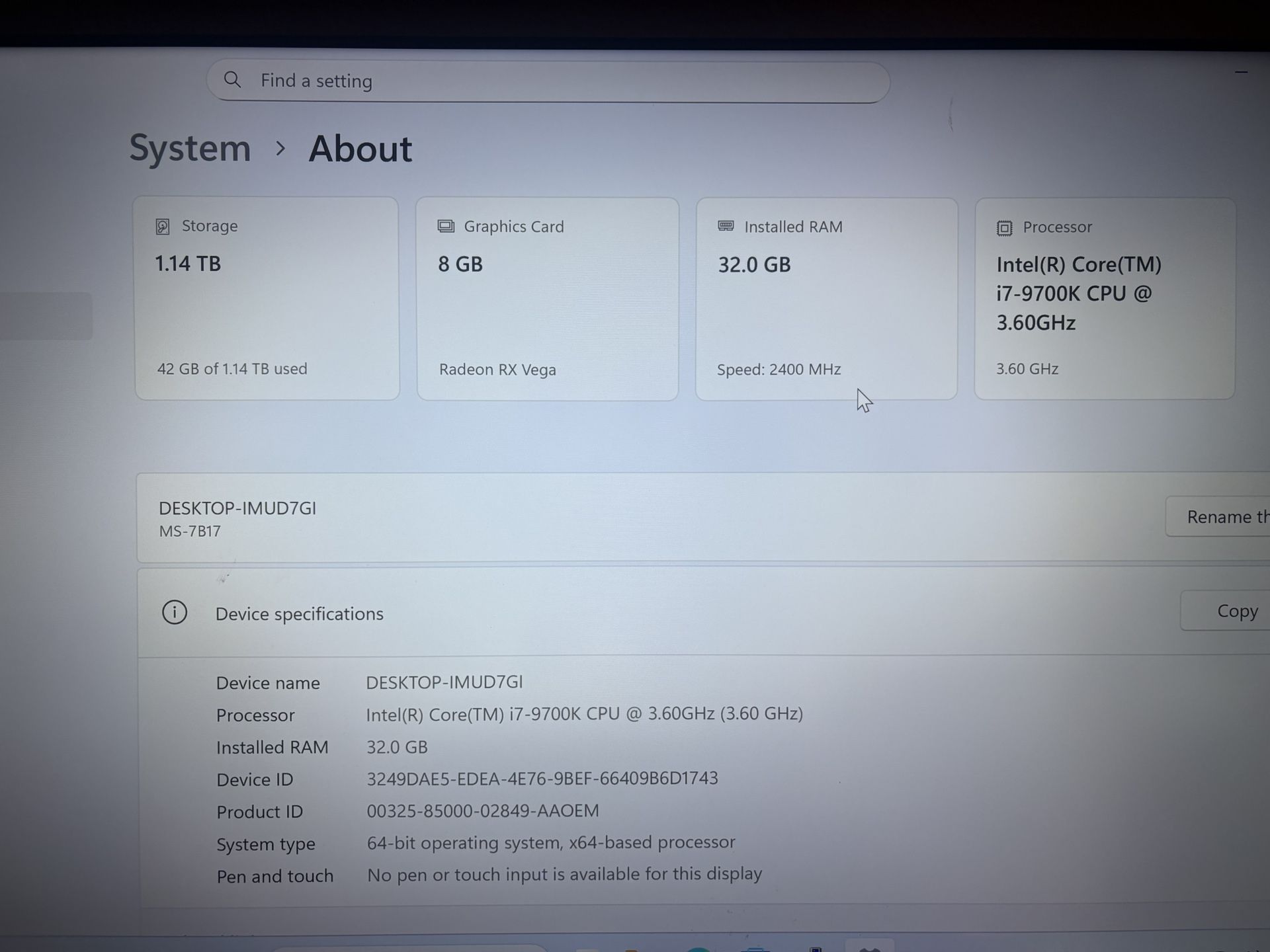 MSI mpg z390 gaming edge ac Intel I7-9700k 32gb DDR4 2400 256gb SSD Main Drive 1TB Storage Drive Amd Radeon RX Vega 8GB Corsair Case with RGB Fans Corsair Commander EVGA 500W including 24" Onn FHD Gaming Monitor 1080p 165Hz