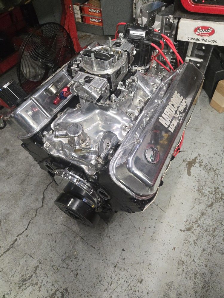 Price $7950 Spring special save $1500 $6500! This week only 04/19-04/26 Engine is built with all forged pistons, rods and crankshaft, moly rings, custom hydraulic roller cam and lifters, moly push rods, aluminum roller rockers, 10qt Jet/IO oil pan with Hi Volume Melling oil pump, heads are Hi Performance rectangle port and have been HP, intake is Weiend Stealth and carb is a Brawler 750DP, distributor is a custom HEI, this engine is fully blueprinted to our strict marine specs here at Hardcore Racing, Engines was Dyno'd and tuned at Westech Performance by us, Please message us and we will send you are shop number and address if you would like to come check out the shop and this engine