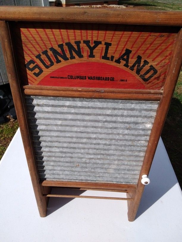 Antique Washboard Cabinet / Cupboard. Three shelf, ready to hang! Washboard is in new condition. Graphics very vivid! Measures 24" tall, 12-1/2" wide and 6" deep.