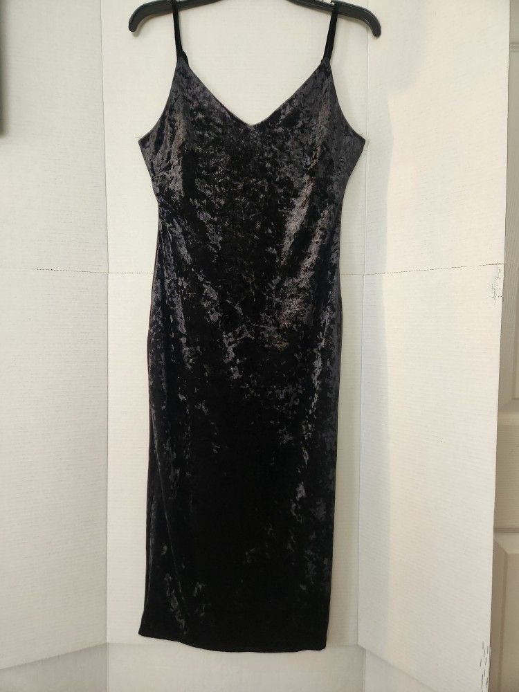 Velvet Dress Women's Size Large Black Spaghetti Strap Midi Fitted