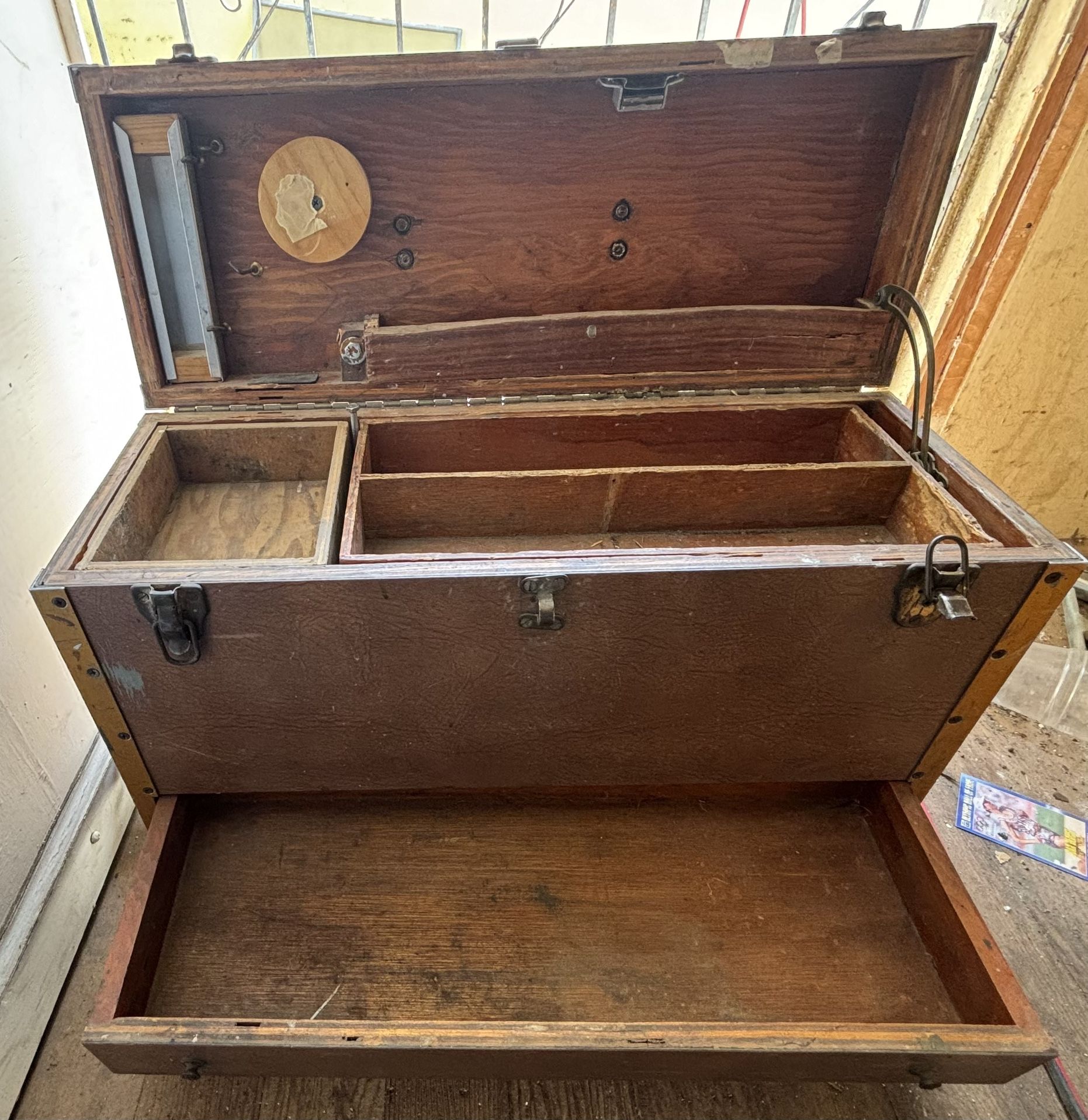 Vintage wooden rolling painters box Bucket of tools Craftsman 3 draw box Everything in photos included
