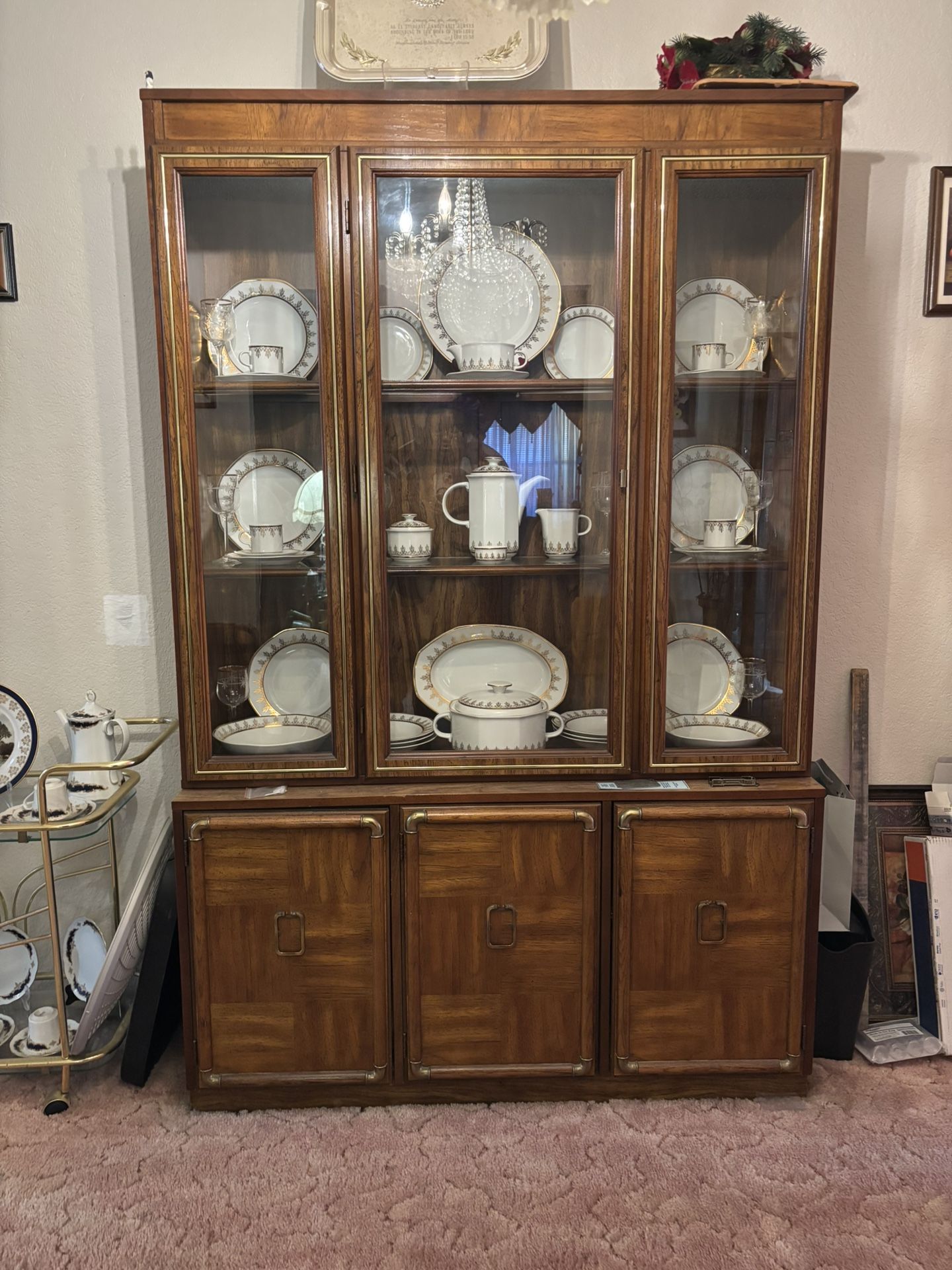 Vintage / Mid-Century Style China Cabinet / Hutch — Solid Wood Finish