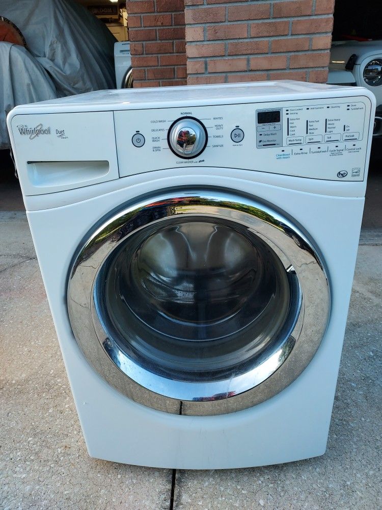 This is a wirlpool duet steam washer. The machine works just has one issue. On first washer the machine bip and show one code. After that you has to drain the water and start over and after that it work perfectly don all cycles wash and don the job. On the picture I add picture of the part it needs. Is over ebay and simply for replace. Price is 50.00 Any cuestión contact jj I'm on orange city FL 32763.