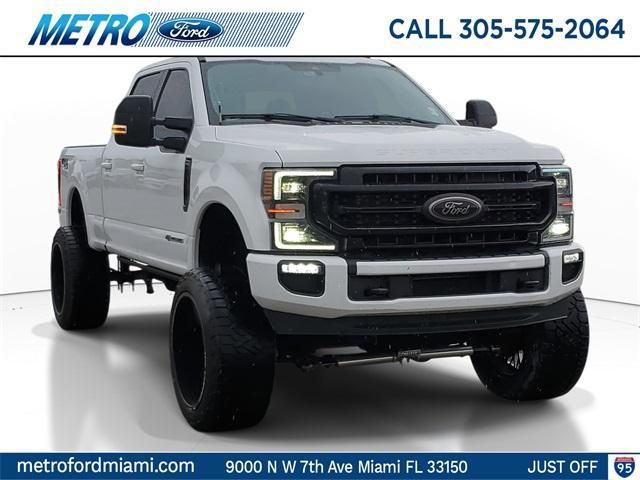 2021 Ford F-250SD Lariat CARFAX One-Owner. 2021 Ford F-250SD Lariat in Star White Metallic Tri-Coat vehicle highlights include, *Great Condition*, *One Owner*, *Low Miles*, *Local Trade*, *Clean CarFax / No Accident History*, *Ford Factory Certified*, *172 Point Inspection Performed*, *Navigation System*, *Leather*, *Sunroof / Moonroof*, F-250 SuperDuty Lariat, 4D Crew Cab, Power Stroke 6.7L V8 DI 32V OHV Turbodiesel, 10-Speed Automatic, 4WD, Star White Metallic Tri-Coat, Black w/Unique Platinum Leather 40/Console/40 Seats, 10 Speakers, 110V/400W Outlet, 240 Amp Alternator, 4-Wheel Disc Brakes, 6' Ebony Black Angular Running Boards, ABS brakes, Adjustable pedals, Air Conditioning, All-Weather Floor Mats, AM/FM radio: SiriusXM, Auto High-beam Headlights, Auto-dimming Rear-View mirror, Automatic temperature control, Black Out Surrounds LED Only Headlamps, Body-Color Front & Rear Bumpers, Brake assist, Bumpers: chrome, Compass, Delay-off headlights, Driver door bin, Ebony Black Painted Front Grille Bars, Ebony Black Painted Mirror Caps, Electronic Stability Control, Electronic-Locking w/3.31 Axle Ratio, Emergency communication system: SYNC 3 911 Assist, Exterior Parking Camera Rear, Flow-Through Console, Front anti-roll bar, Front Bucket Seats, Front Center Armrest, Front dual zone A/C, Front fog lights, Front Leather Seating Surfaces 40/Console/40, Fully automatic headlights, FX4 Off-Road Package, GVWR: 10,000 lb Payload Package, Hard Folding Tonneau Pickup Box Cover (Pre-Installed), Heated door mirrors, Heated Steering Wheel, Hill Descent Control, Illuminated entry, Lariat Black Appearance Package, Leather steering wheel, LED Box Lighting, LED Roof Clearance Lights, Low tire pressure warning, Memory Power-Adjustable Pedals, Off-Road Specifically Tuned Shock Absorbers, Order Code 608A, Outside temperature display, Overhead console, Panic alarm, Passenger door bin, Power door mirrors, Power driver seat, Power passenger seat, Power windows, PowerScope Trailer Tow Mirrors w/Heat, Radio data system, Radio: B&O System by Bang & Olufsen, Rain-Sensing Windshield Wipers, Rear Parking Sensors, Rear seat center armrest, Rear step bumper, Rear Wheel Well Liners (Pre-Installed), Rear window defroster, Remote keyless entry, Remote Start System, Security system, SiriusXM Radio, Speed control, Split folding rear seat, Steering wheel mounted audio controls, SYNC 3 Communications & Entertainment System, Tachometer, Tailgate Step & Handle, Telescoping steering wheel, Tilt steering wheel, Tough Bed Spray-In Bedliner, Traction control, Trip computer, Turn signal indicator mirrors, Twin Panel Power Moonroof, Unique FX4 Off-Road Box Decal, Upfitter Switches (6), Variably intermittent wipers, Wheel Locks (Pre-Installed), Wheels: 20' High-Gloss Black Premium Painted Alum. 4WD