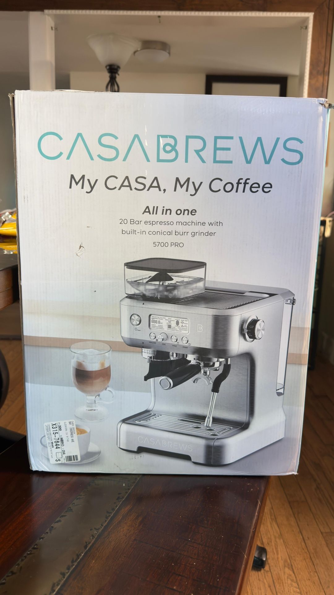 New Casabrews espresso machine for sale Built in coffee grinder and milk frother Comes with a bunch of accessories and extra grinder New- open box Original price is 490$