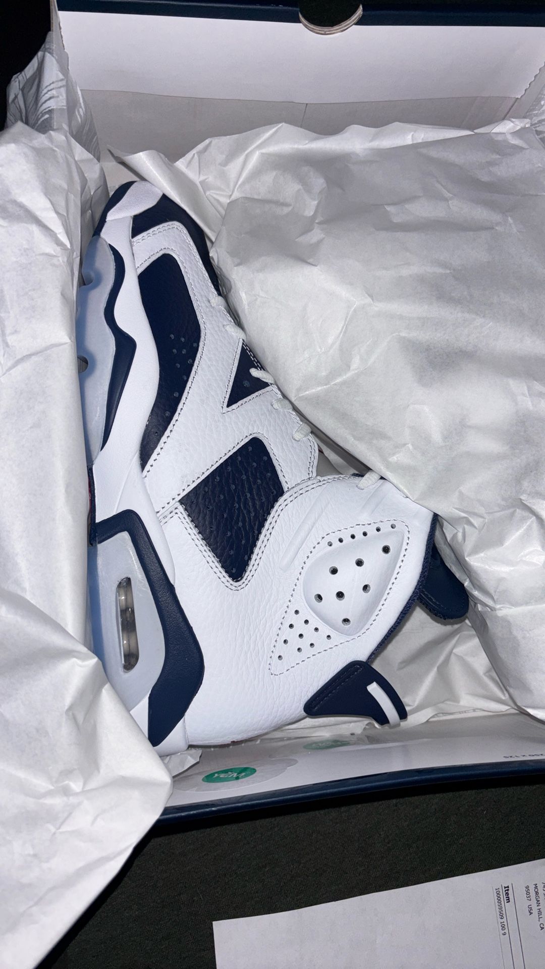 I have a brand new pair or Jordan 6 Olympics never worn 2024 release have receipt for proof of purchase from shoe palace 100 💯 real delivery is available size 9 men’s