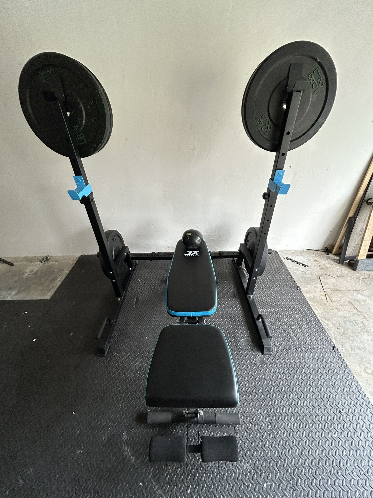 Selling my full home gym setup. Perfect for anyone looking to work out at home! Includes: • Adjustable workout bench • Weight plates • Dumbbells • Weight Stand and bars Everything is in great condition and ready to use. Selling as a set.