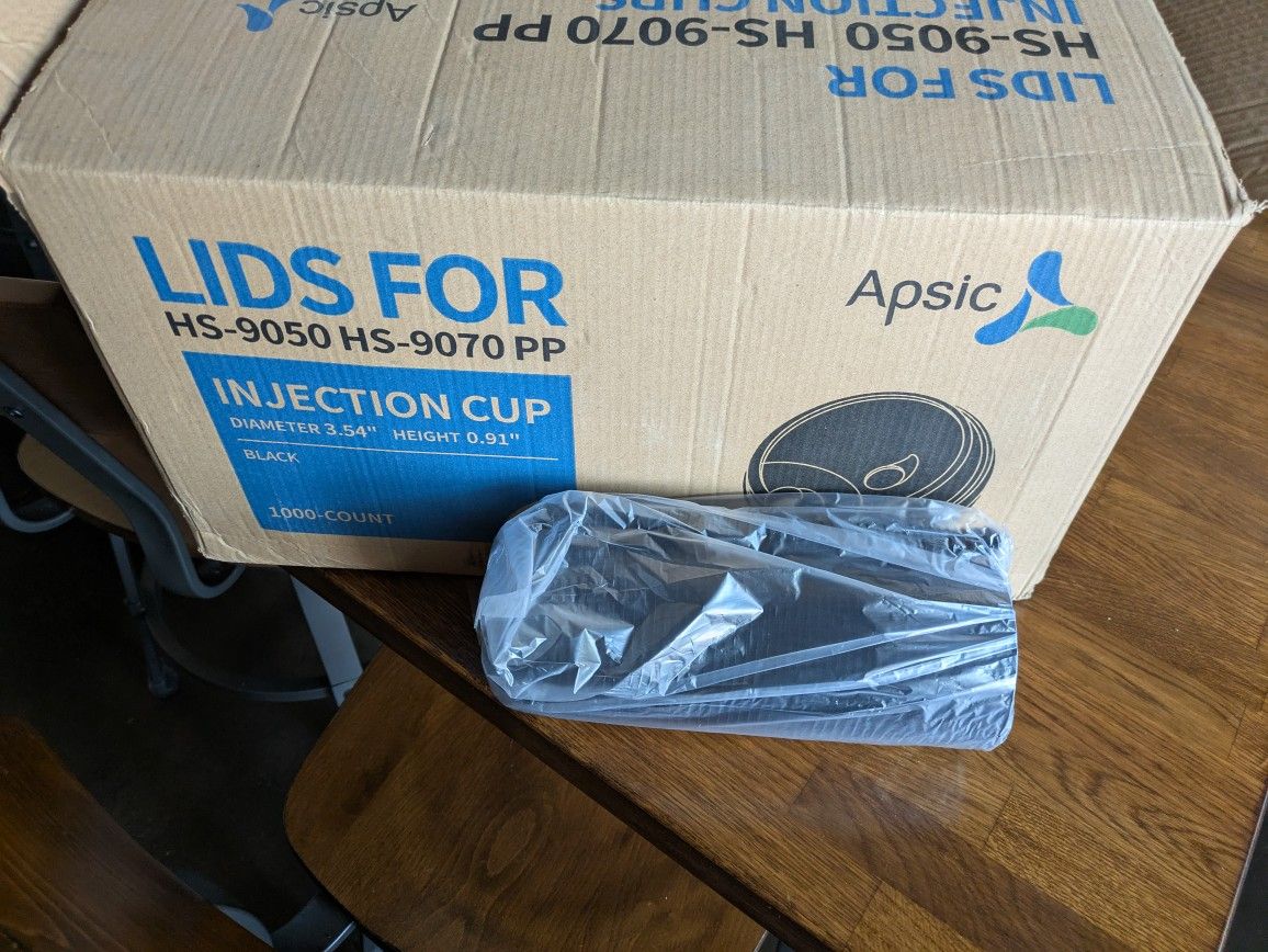 Lids for HS-9050 injection cups. I don't use these types of cups anymore. About 15 sleeves left. Perfect for boba or other tea cups.