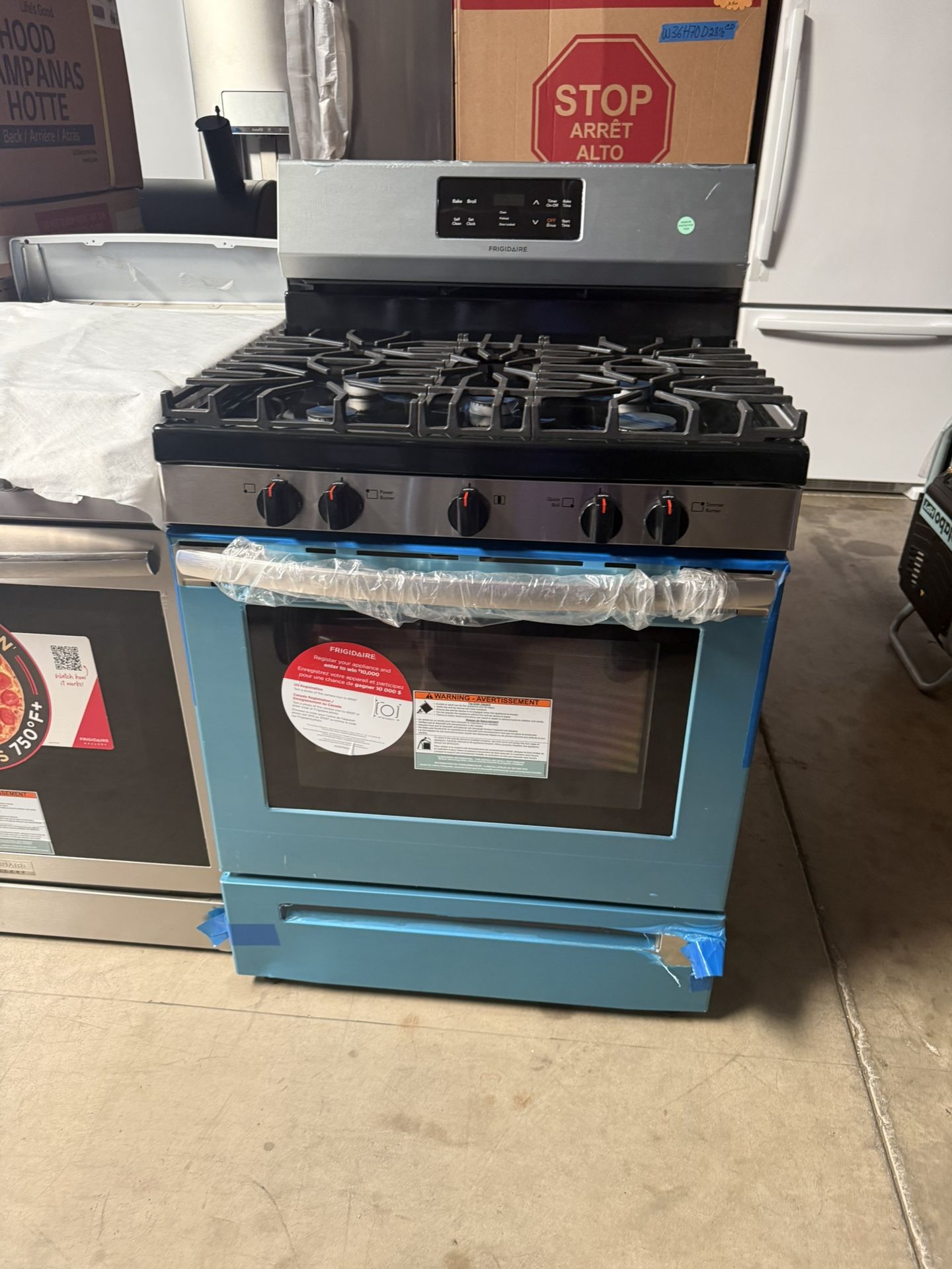 Stove gas range self cleaning Frigidaire 5 burner stainless steel w 30” Never used only cosmetic dents and the side panel Serious buyers Serios compradores