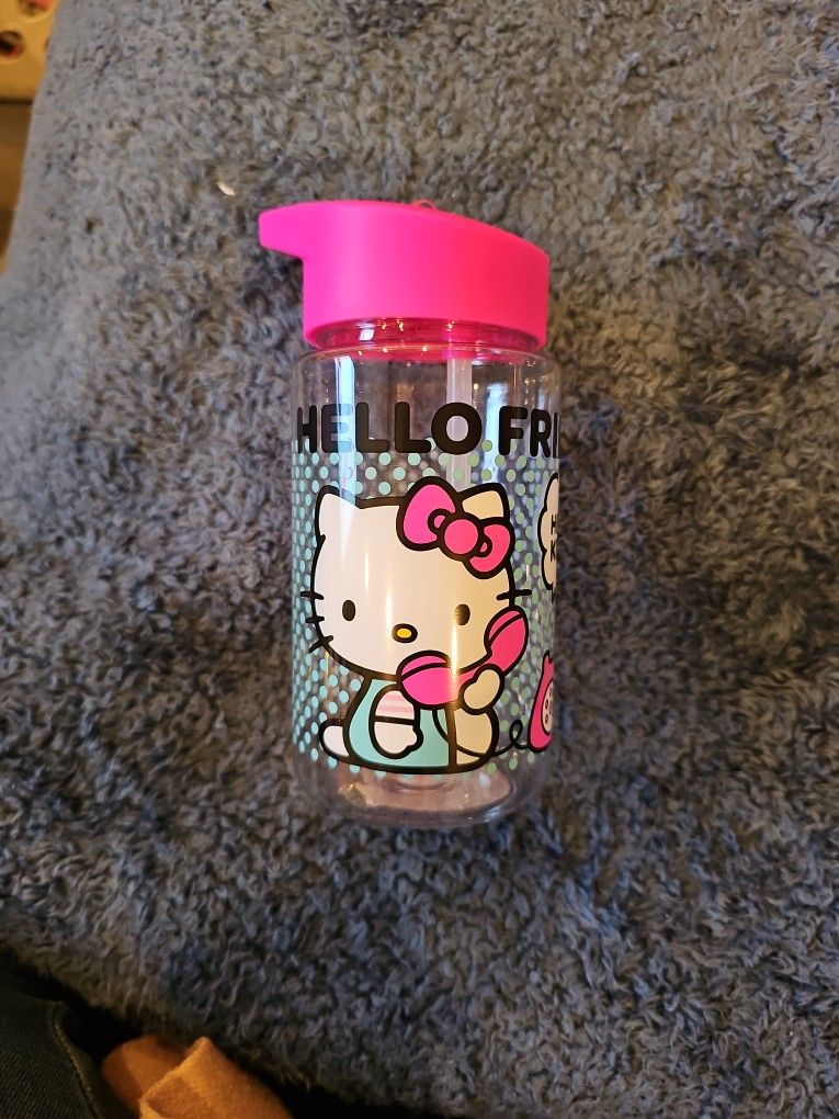Brand New Hello Kitty, 14 oz plastic water bottle with pick lid cash only