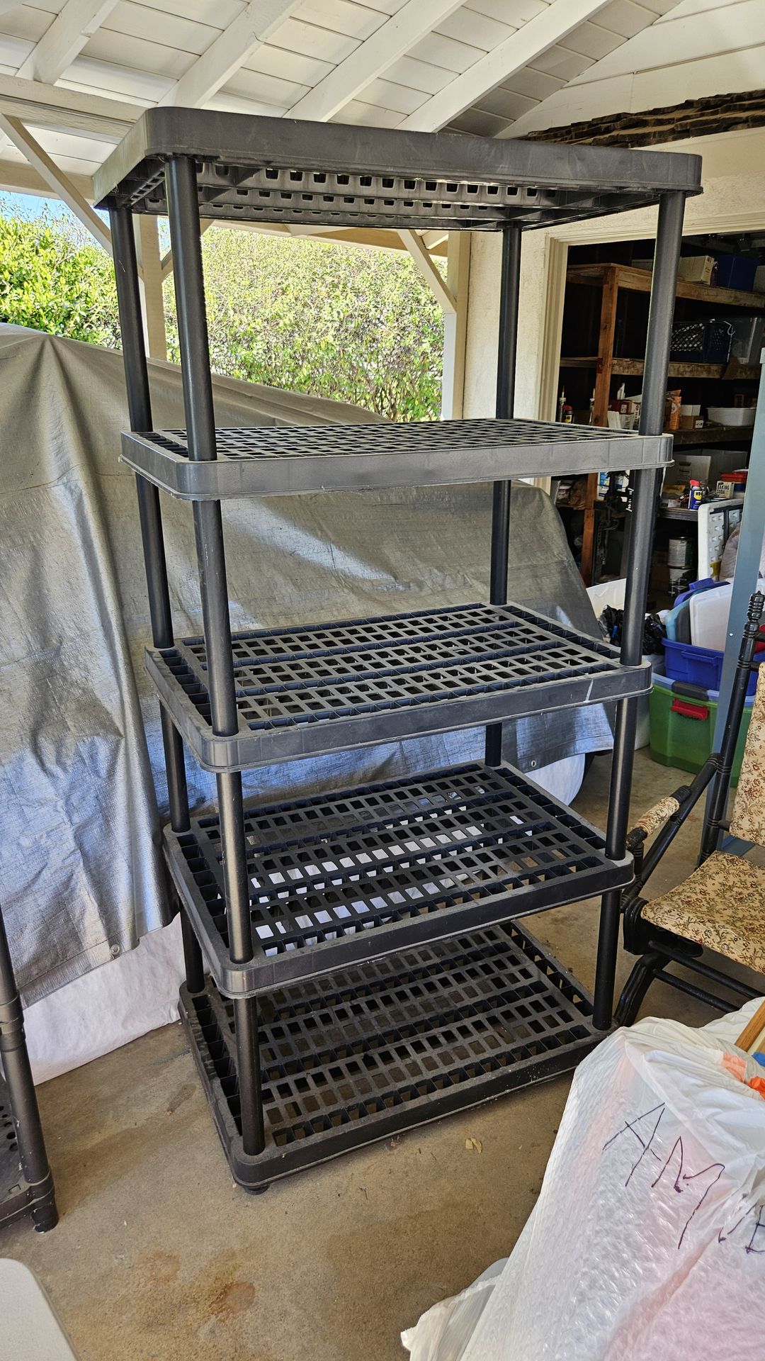 Heavy duty utility shelf with 5 shelves, plastic resin 3x6x2 feet Located in Covina Cash only No delivery or shipping