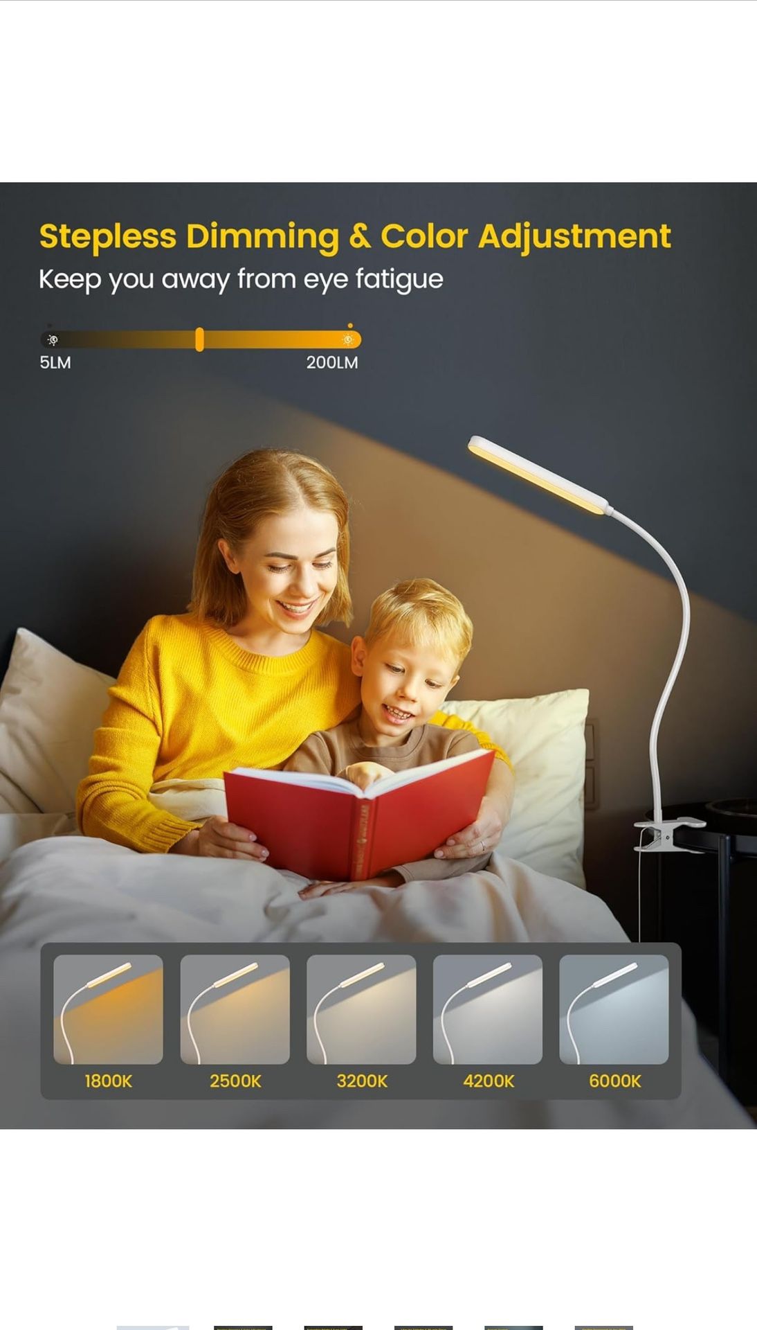Glocusent 5W Multi-Purpose Clip On Light, 38 LED Eye Caring Reading Bed Lamp, 5 Color & 5 Brightness with a Remote, 30-Min Auto Off Timer, Perfect for Bed Reading/Studying/Working