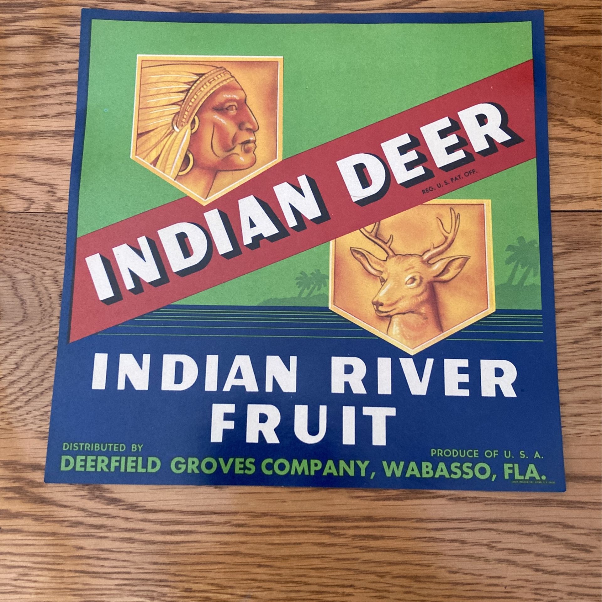 Size is 8 1/2 x 8 1/2 Indian deer brand, Indian river, fruit, Deerfield groves company, Wabasso Florida product of USA. All labels are well stored in new condition. Will ship securely check out my other ads. I will combine shipping. I have many and will give lot deals