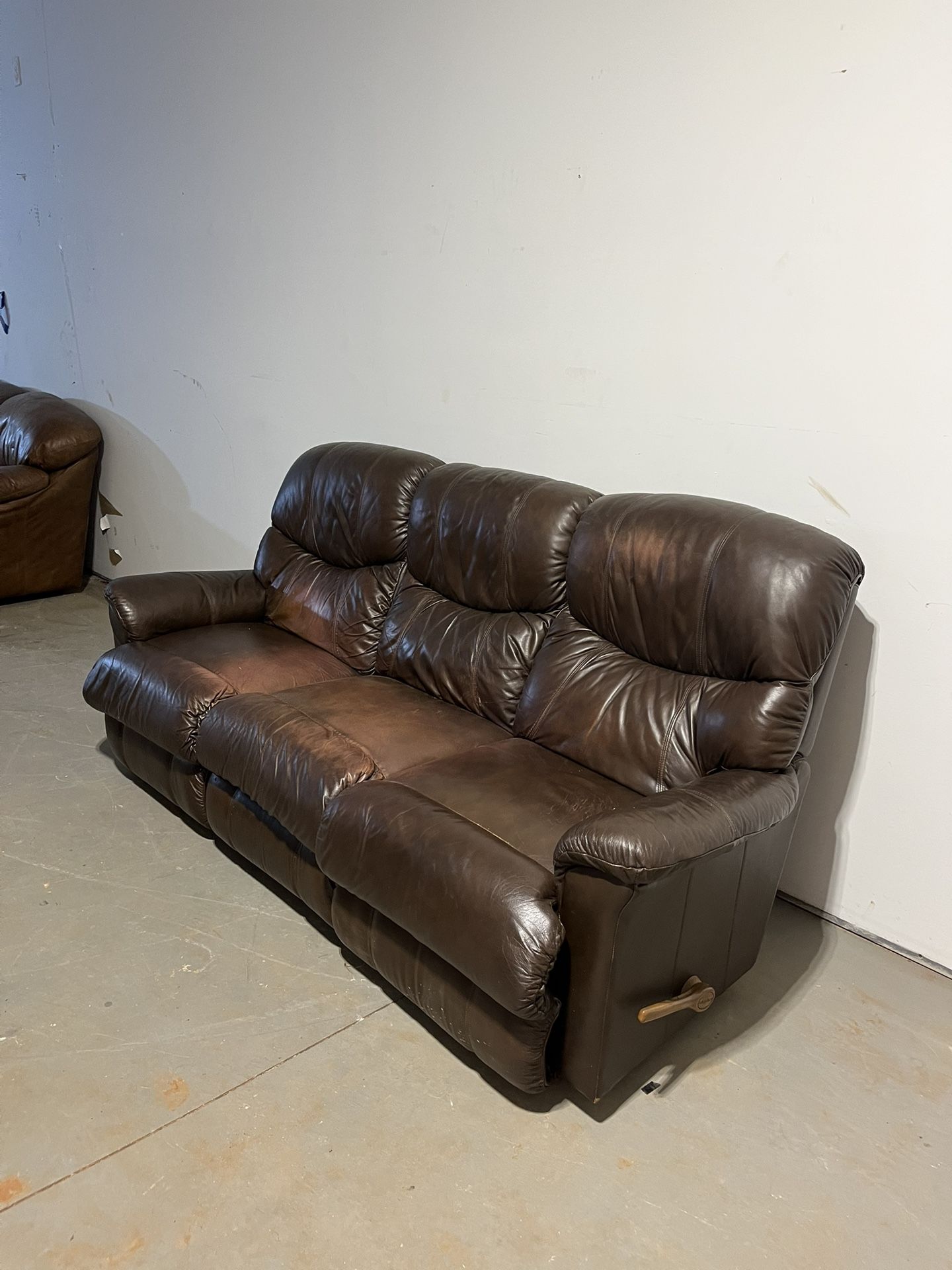 Looking for a comfy addition to your living room or den? This Lazyboy leather reclining couch is perfect for relaxing, watching TV, or hosting guests. • Brand: Lazyboy (known for quality & comfort) • Features: 3 cushioned seats with plush padding and dual recliners on each end • Material: Genuine leather in a rich brown tone • Condition: Pre-owned, some visible wear on the seat cushions, but still very comfortable and fully functional • Size: Fits 3 people comfortably Great for anyone needing a reliable and cozy couch at an affordable price! 💲 Asking Price: [150] 📍 Pickup in Edmond