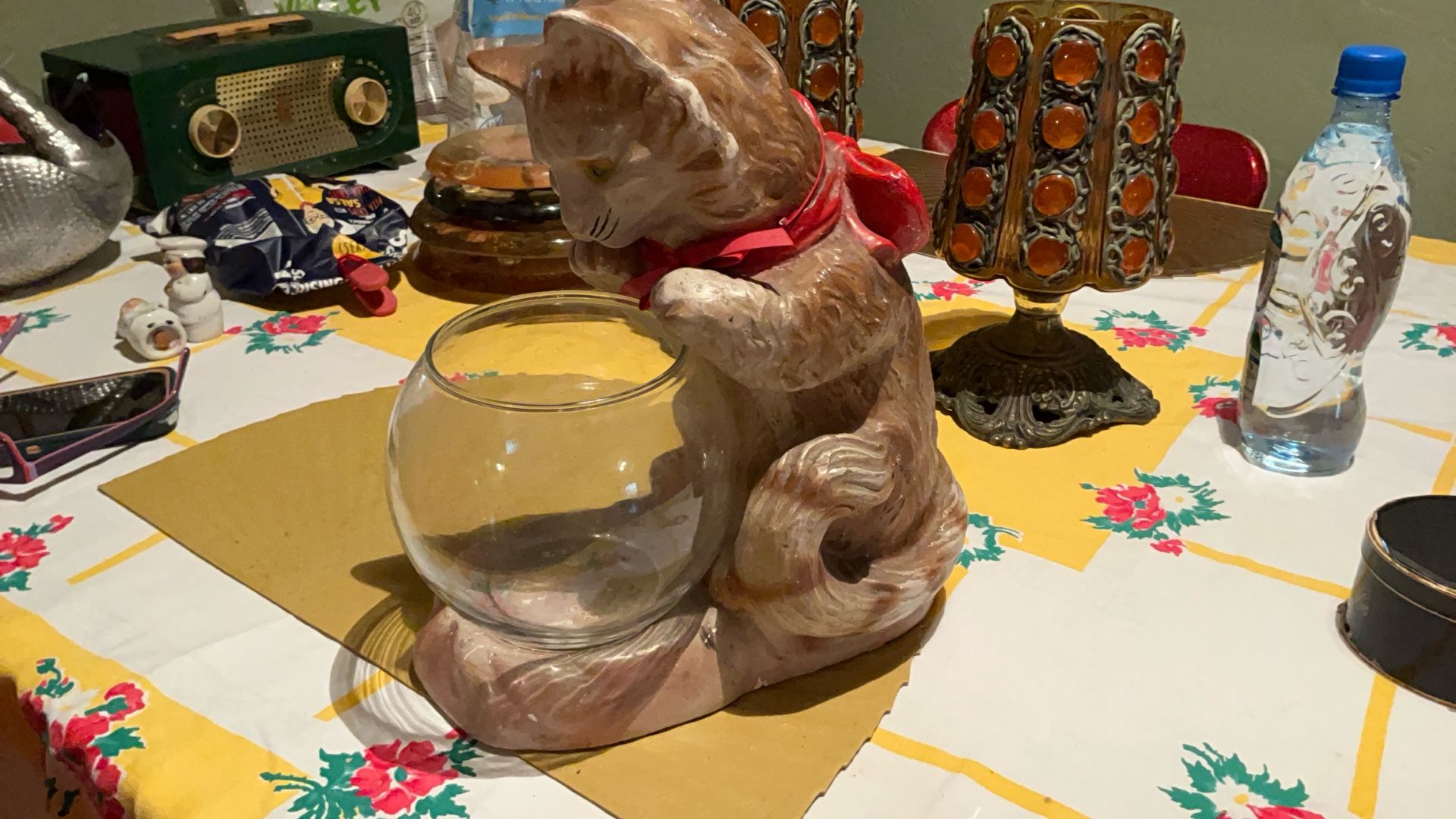 1920S Antique Vintage Chalk ware Cat Fishbowl Fish Tank Adorable