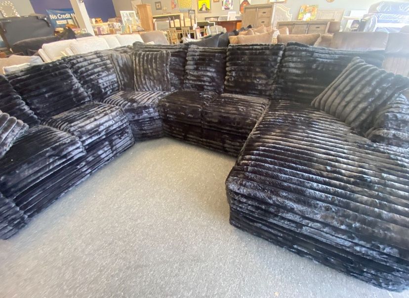 BLACK Sectional Sofa Right or Left Facing wide Chaise 130x100 $1,599 ($3,399 msrp) pick up / delivery available cash Zelle debit layaway easy NO CREDIT NEEDED no interest financing credit builder text 31210 to 523363 bedroom living dining room outdoor furniture sofa sleeper love seat sets sectionals cheap to custom tables chairs rugs mattresses rebuilt name brand dresser chest accent pieces art wall decor Southern California Los Angeles Orange Rancho Cucamonga Ontario Ranch Eastvale Jurupa Valley Riverside Moreno Valley San Bernardino Highland Corona Pomona Fontana Chino Hills Upland Rialto Colton Riverside Claremont San Dimas LaVerne Hesperia Oak Hills Victorville Apple Valley Banning Beaumont Loma Linda Redlands Palm Springs West Covina Brea Diamond Bar Azusa Glendora Lake Elsinore