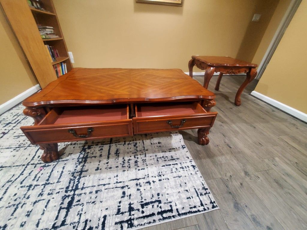 The item is open but NEVER USED. HARDWOOD End Table : L= 27 W=27 H=24 Inch: $100 Coffee Table: L=53 W=35 H=20 Inch:$200
