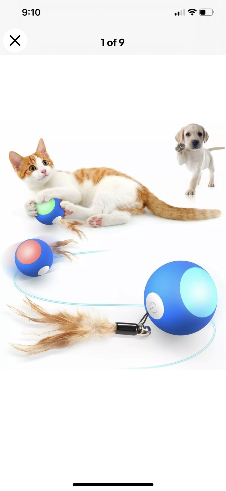 【Interactive Cat Toy with 3 Detachable Feathers】 Our automatic moving cat toy ball comes with replaceable parts which include 3 feathers with bells, don't worry about running out of feathers. It will become a cat’s boredom buster. 【Cat Ball with RGB LED Light】 RGB Lights immediately caught cat's attention! This cat toy can automatically run irregularly with RGB colorful lights and feathers to quickly stimulate the cat's chasing and hunting instincts. It can help cats promote exercise and stay away from loneliness and anxiety. 【Low Noise & 360 Degree Self Rotating Ball】 Many cats get nervous because of the sound of other cat toys, Our cat toy runs very quietly and will not scare the kitten. Cat toy ball can make random movements to keep cats being interested in it and cats don’t get bored! It can play independently with your cat and is the best way to keep your cat company when you are busy. 【USB Rechargeable & Easy to Use】 The new design makes charging convenient and simple, no need to open the ball, just open the rubber cover to charge. Build-in 200mAh battery, it takes 1-2 h for full charging, the toy ball can accompany and have fun with your cat for 5 hours. Long press for 3 seconds to turn on/off the ball. 【Ideal Gift for Your Cat & Puppy】 Let's start the cat chase ball game. Our cat toy can accompany your pet when you are busy. It is made of the combination of soft rubber and ABS, it will not damage the furniture when it rolls irregularly and it works great on tile floor, wood floor and thin carpet. It can be cleaned by simply wiping with a wet cloth.