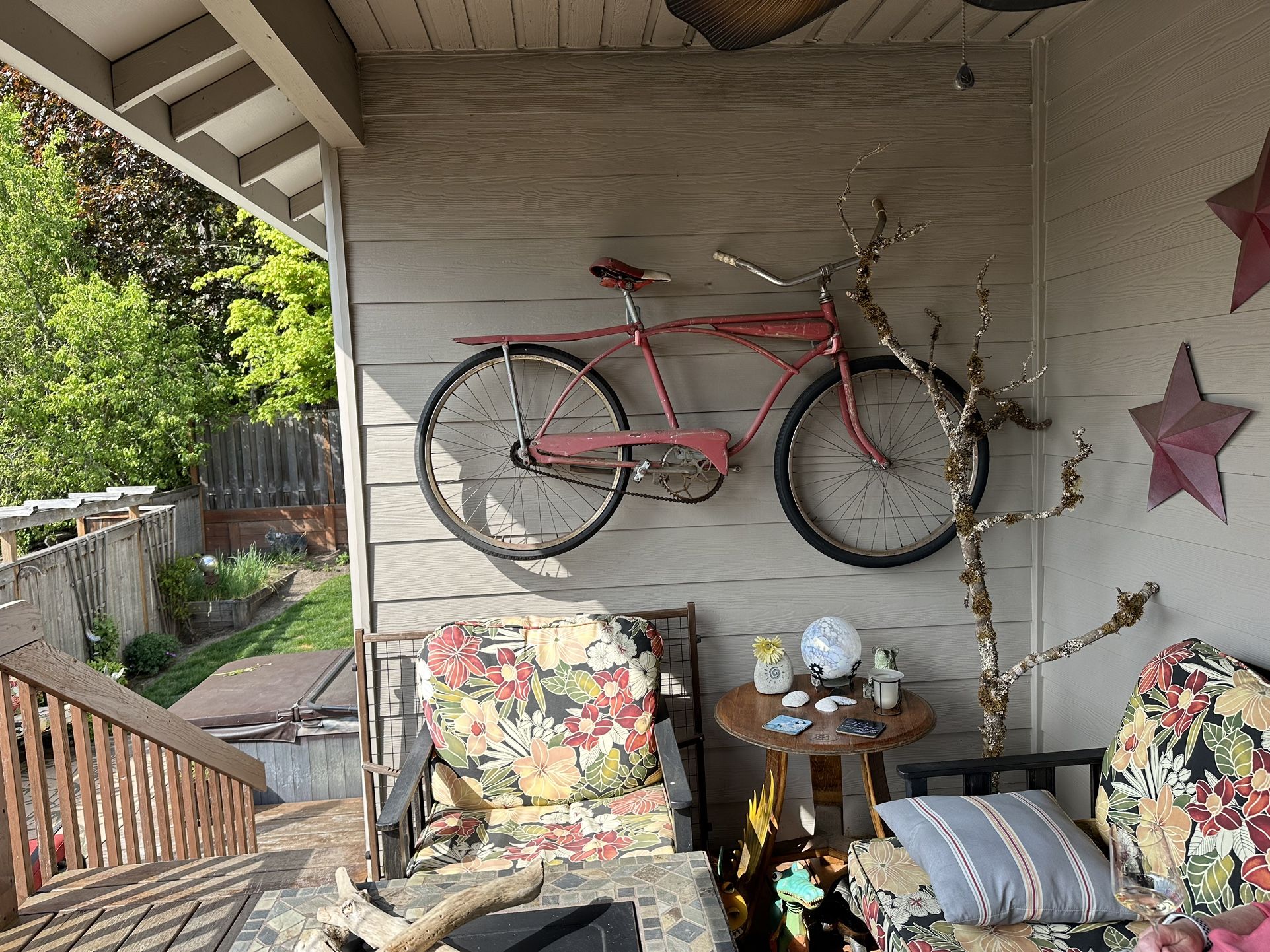 Old School Cruiser hang it up on the deck or refurbish it and ride! Cool bodywork (tank, rack & chain guard)