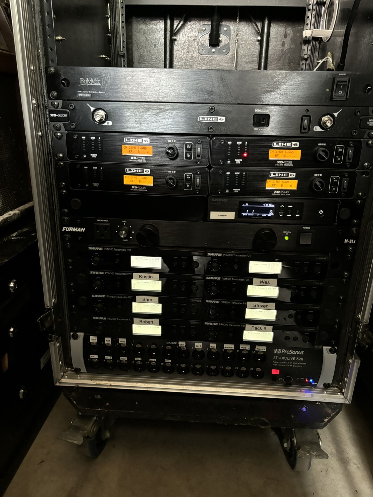 Selling a complete, high-end professional audio bundle. Everything is in excellent working condition, as shown in the pictures and video. This is a turn-key setup ideal for live events, touring, or installations. I know the value of this gear—lowball offers will be ignored. Bundle only. Not selling items separately. Included in the bundle: • Polymic UHF Antenna Distribution System • Line 6 XD-AD8 • (4) Line 6 XD-V75 Wireless Microphone Systems • Shure QLXD4 Receiver with Wireless Bodypack Transmitter • Furman M-8LX Power Conditioner (with lights) • (8) Shure PSM300 Transmitters (P3T) – Pre-labeled • (7) Shure P3RA Wireless Bodypack Receivers (J13 Band) • Presonus StudioLive 32R – 32-Channel Digital Mixer with Remote XMAX Preamps • Odyssey Glide Style Combo Rack Case • All necessary cables/wires included Asking $8,900. Will consider reasonable offers. No trades. No lowballers. Serious inquiries only.