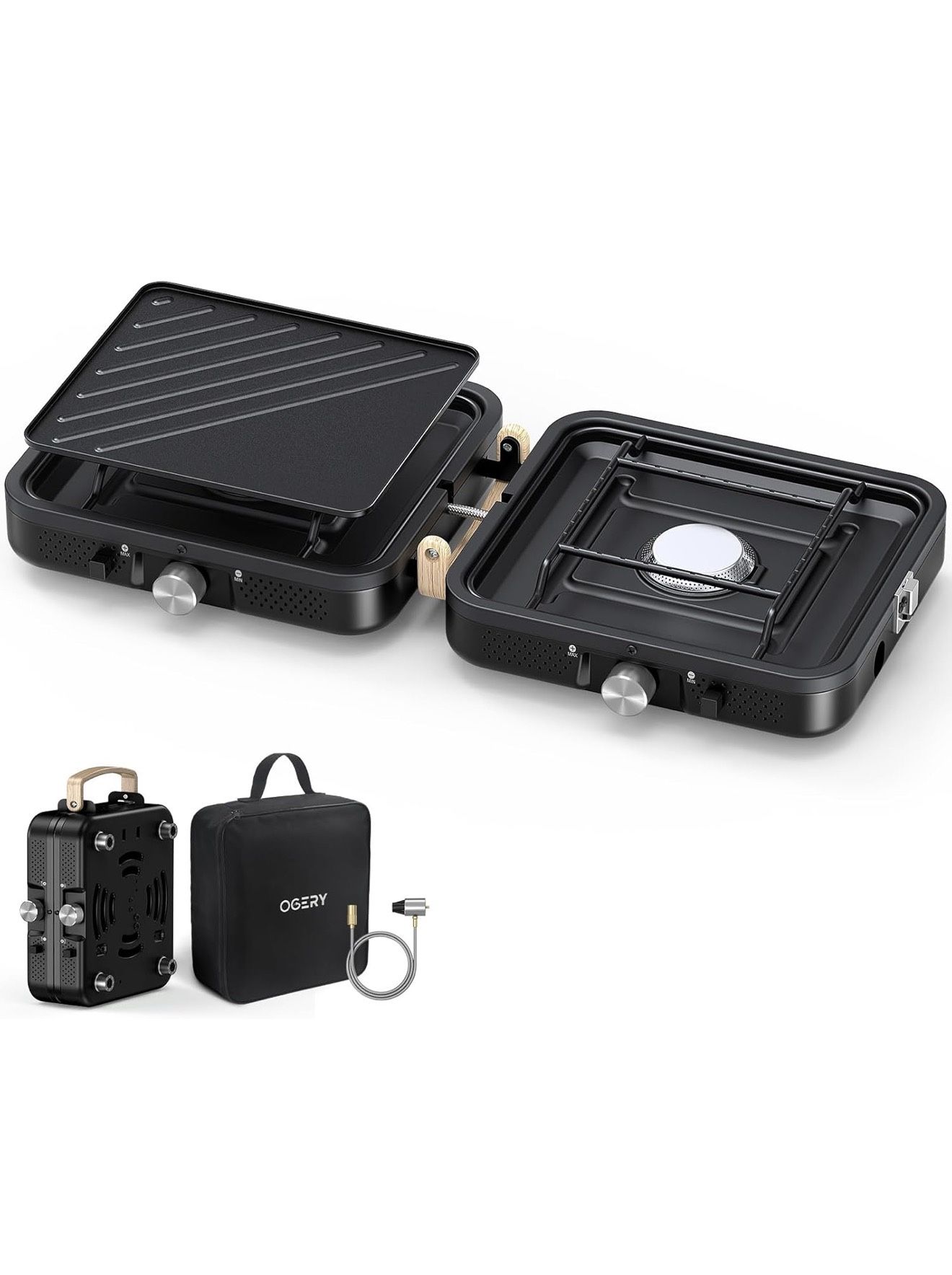 OGERY 2-Burner Foldable Camping Stove with Griddle (Textured & Smooth) and Carrying Bag, Portable Propane Camp Stove with 2 Adjustable Burners & Piezo Ignition, for Camping Tailgating Essentials Gear NEW IN BOX‼️‼️ NEVER OPENED ‼️ PICK UP MELVILLE‼️ PRICE IS FIRM‼️