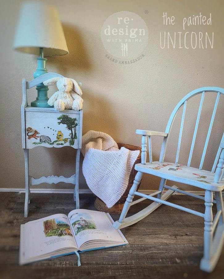 Winnie The Pooh Refinished Small Side Table And Childs Rocking Chair
