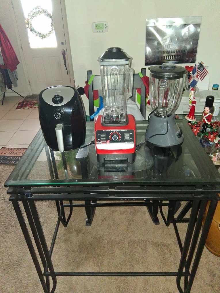 GOOD DAY PPL, BLESSINGS, IM SELLING THIS 4 KITCHEN ITEMS... 1. GLASS DINING TABLE FOR 2 PPL, "CHAIRS NOT INCLUDED". 2. 2 BLENDERS: 1. OSTER CLASSIC+ DURALAST. WORKS PERFECT!! 2. PEBEPC 4500Bt. 3.0MRCA MULTIFUNCTION. WORKS OK! 4. LAST ONE IS A HAMILTON BEACH AIR FRYER GOOD FOR A SINGLE PERSON OR COUPLES. WORKS PERFECT!! IM ASKING ONLY FOR EVERYTHING $95.00!! OBO. (NOT SELLING SEPARATE) IF YOU ARE INTERESTED MSM OR CALL (contact info removed). TY VM. STAY SAFE. HEARD FROM YOU SOON!! MERRY CHRISTMAS! HAPPY NEW YEAR!