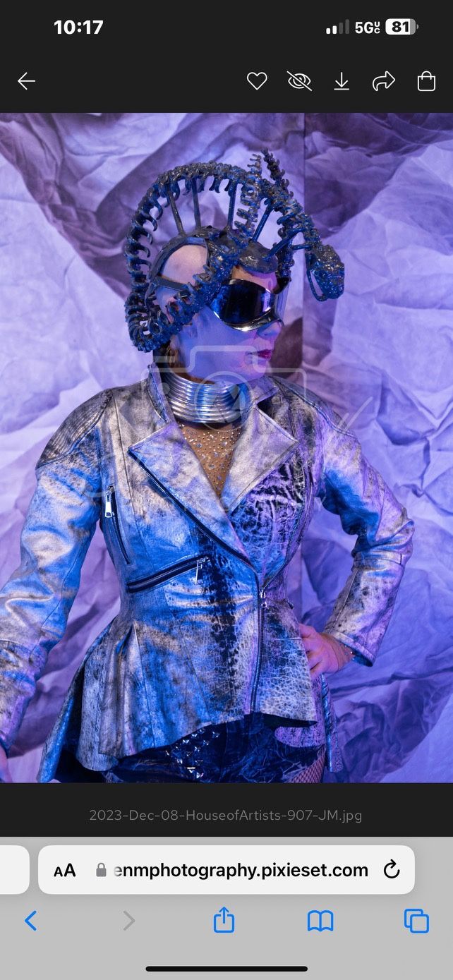 This amazing headdress is lightweight and easy to wear. The double tails of the serpent go around the ears of the and the side of your head. It is easily pinned onto someone with hair or can be worn with someone who is bald. Looks great on a man or woman. It is made all out of molding plastic. It is an amazing statement piece. Used only in photo shoot.