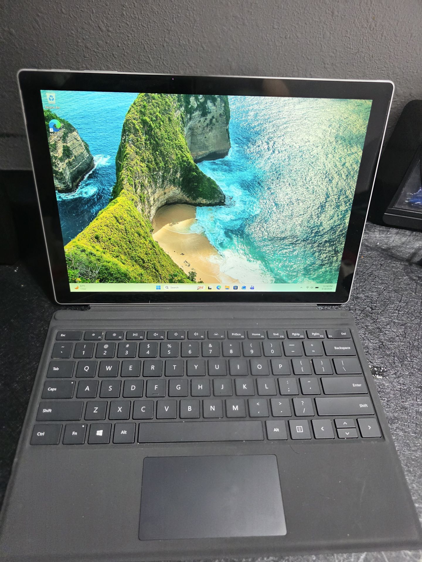 Powerful Microsoft Surface Pro. Has Windows 11 and comes with the detachable keyboard. Microsoft Office Home and Business 2024 is activated. TOUCHSCREEN (keyboard isn't getting detected but does work)