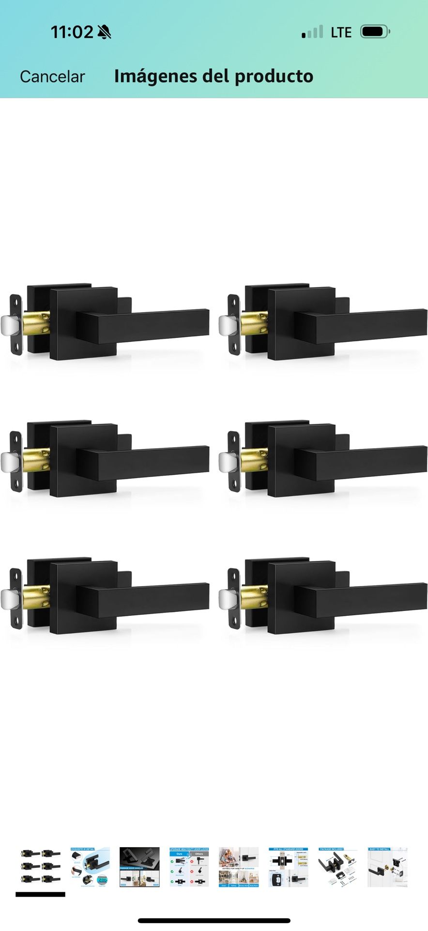 Paquete de 6 manijas de puerta de color negro mate, manijas de puerta de paso para pasillo y armario, pomos interiores de puerta sin llave, resistente