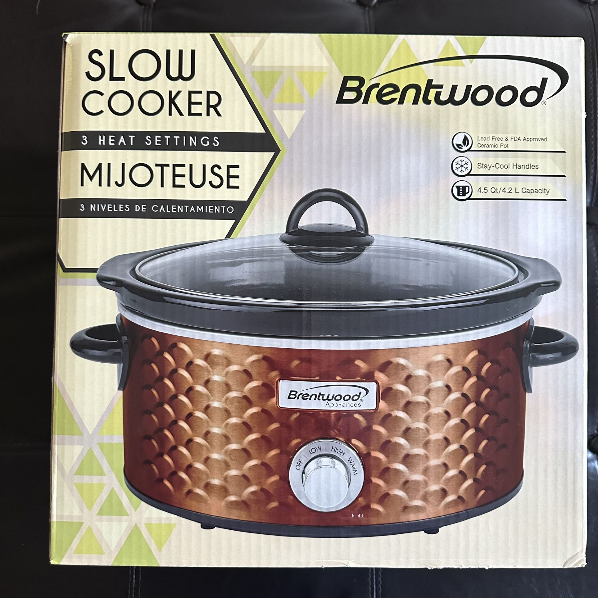 Slow cooker - 4.5 Qts. Capacity - 3 temp levels BOX got damaged in water leak at my house, product intact!