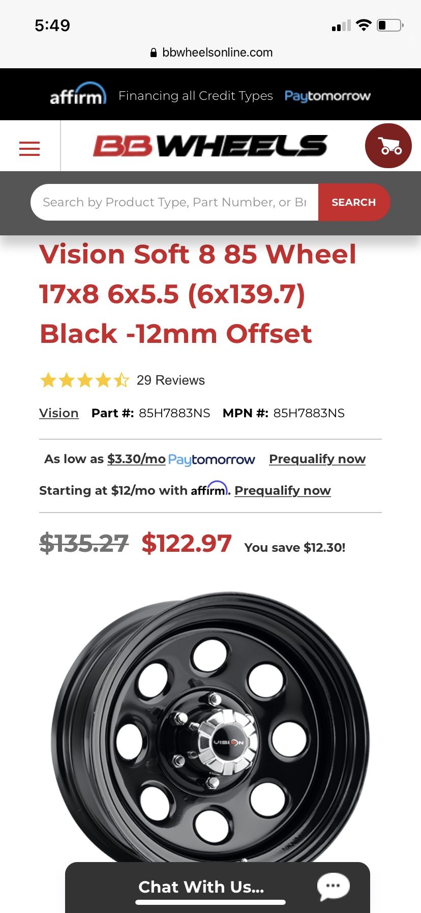 4)Vision Soft 8 17” 6x5.5 With 33” Tires