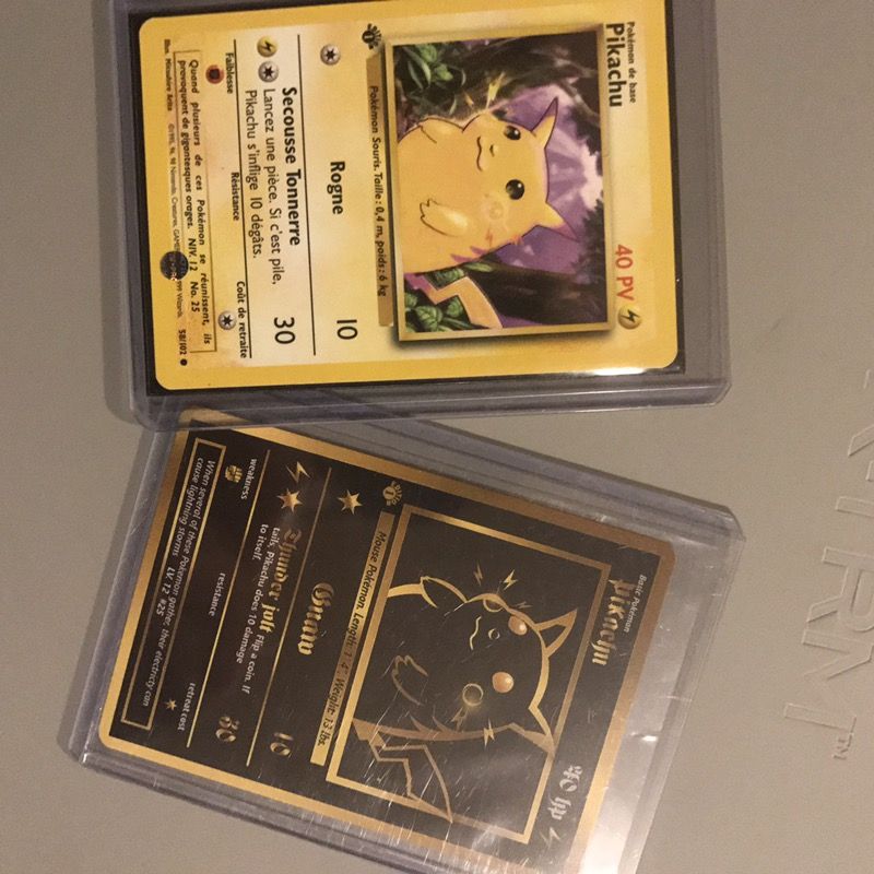 Pokemon first edition base set Pikachu #58/102 and first edition base set custom pikachu