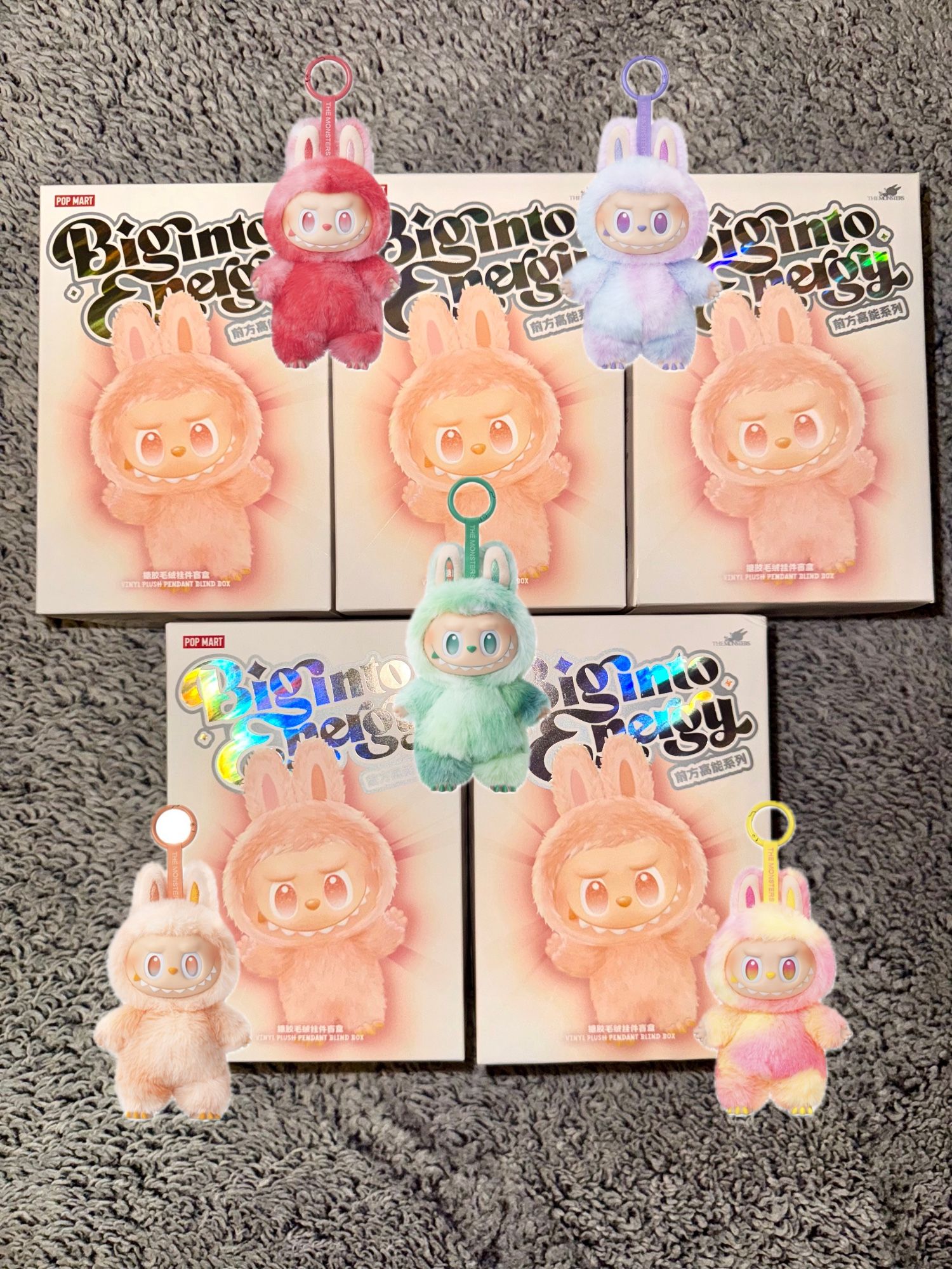 Big into Energy Labubu confirmed blind boxes bought directly from Pop Mart. 100% Authentic. Luck, Loyalty, Serenity, Love and Happiness available. Secret ID available as well.