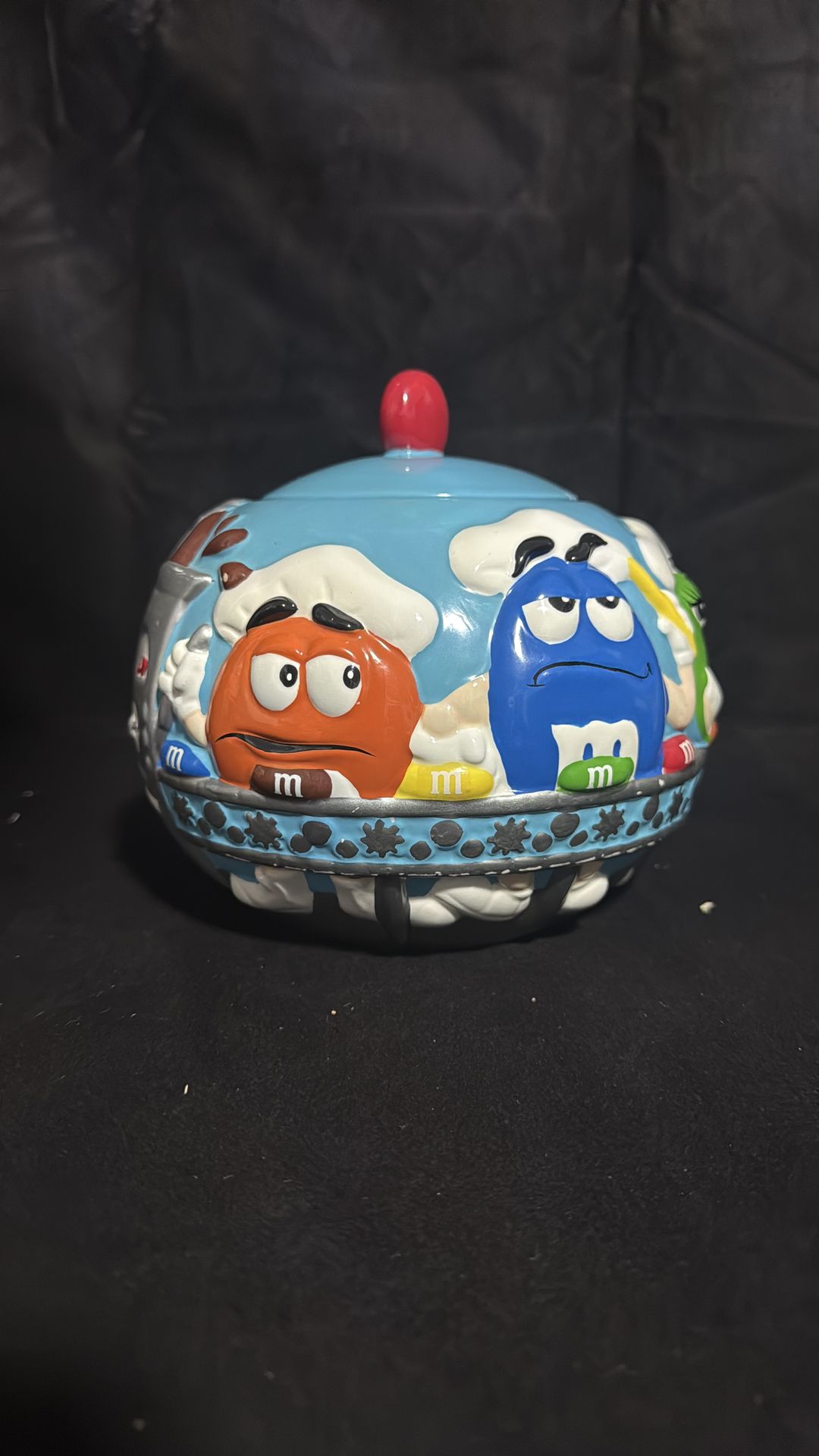 Ceramic M&M's Blue Bakery Cookie Jar produced in 2002.