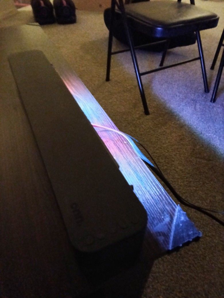 This is a great sound system that fits nearly under a standing TV. You can turn the LED lights on which can go along to music or a movie, or simply fade or bounce independently. The sound quality is surprisingly good.