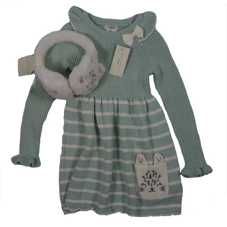 NWT Toddler Girls 4T Max Studio "HAPPY KITTY" Face Knit Dress w/ Earmuffs