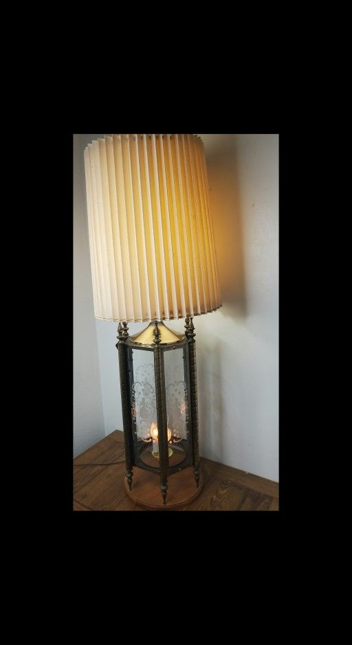 Vintage Etched Glass Paneled Lamp