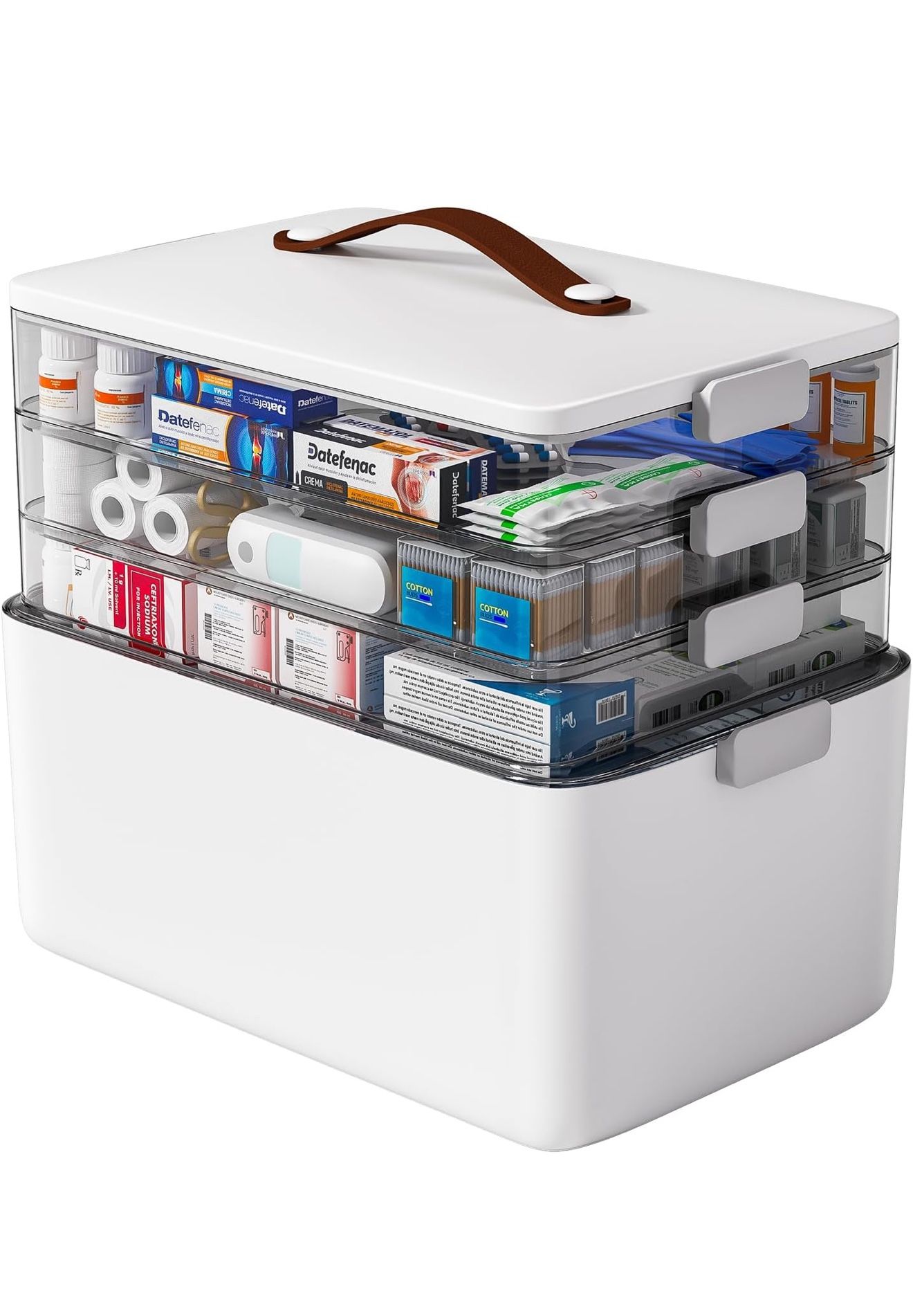 Medicine Box Organizer Storage:3 layers transparent grey & white bottom layer protects against sunlight and moisture. The empty first aid box lets you put different things in different layers, making finding things more efficient. Thickened Plastic :The first aid storage box is made of high-quality PP and HIPS, and this medicine organizer box for cabinet can be firmly used after assembly. The handle design can help you easy move this medicine chest, making it perfect for emergency situations and medical box. It also functions well as plastic containers with lids for storage Multi-functional Divider Tray: ideal for organizing small items like medicine bottles and cotton swabs, etc. This feature keeps everything in the medicine box organizer storage neat and accessible, avoiding the hassle of searching through clutter. Perfect addition to plastic bins for storage with lids Large Capacity Storage Space: the lower layer holds items up to 6.3" in height. This medicine storage box also serves as an art box, craft organizer box, coloring storage, fish box, sewing box, and snack organizer, meeting various organizational needs Hygienic Design: The plastic design ensures hygiene and visibility, while the secure lid prevents spills, making it perfect for both first aid and general storage buns