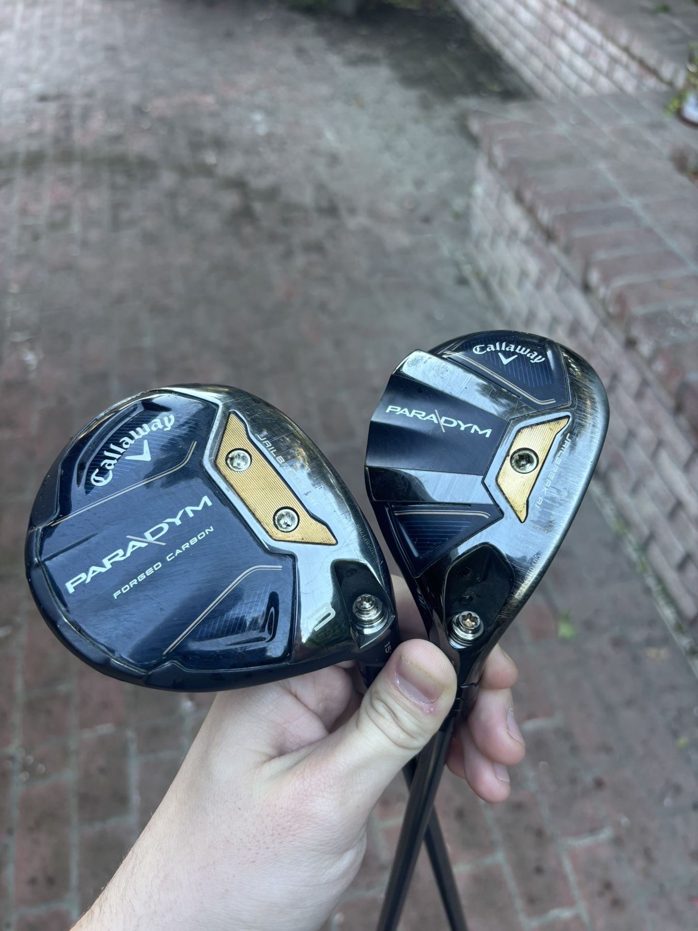 Callaway Paradym 3 Wood and 4 Hybrid in good condition. The 3 wood has a cosmetic dent on the end of the toe, completely refurbished from Callaway Preowned. Both have regular flex silver hazardous shafts, willingly to sell separately Will sell the woods with the driver on my page for $200 Need gone ASAP .