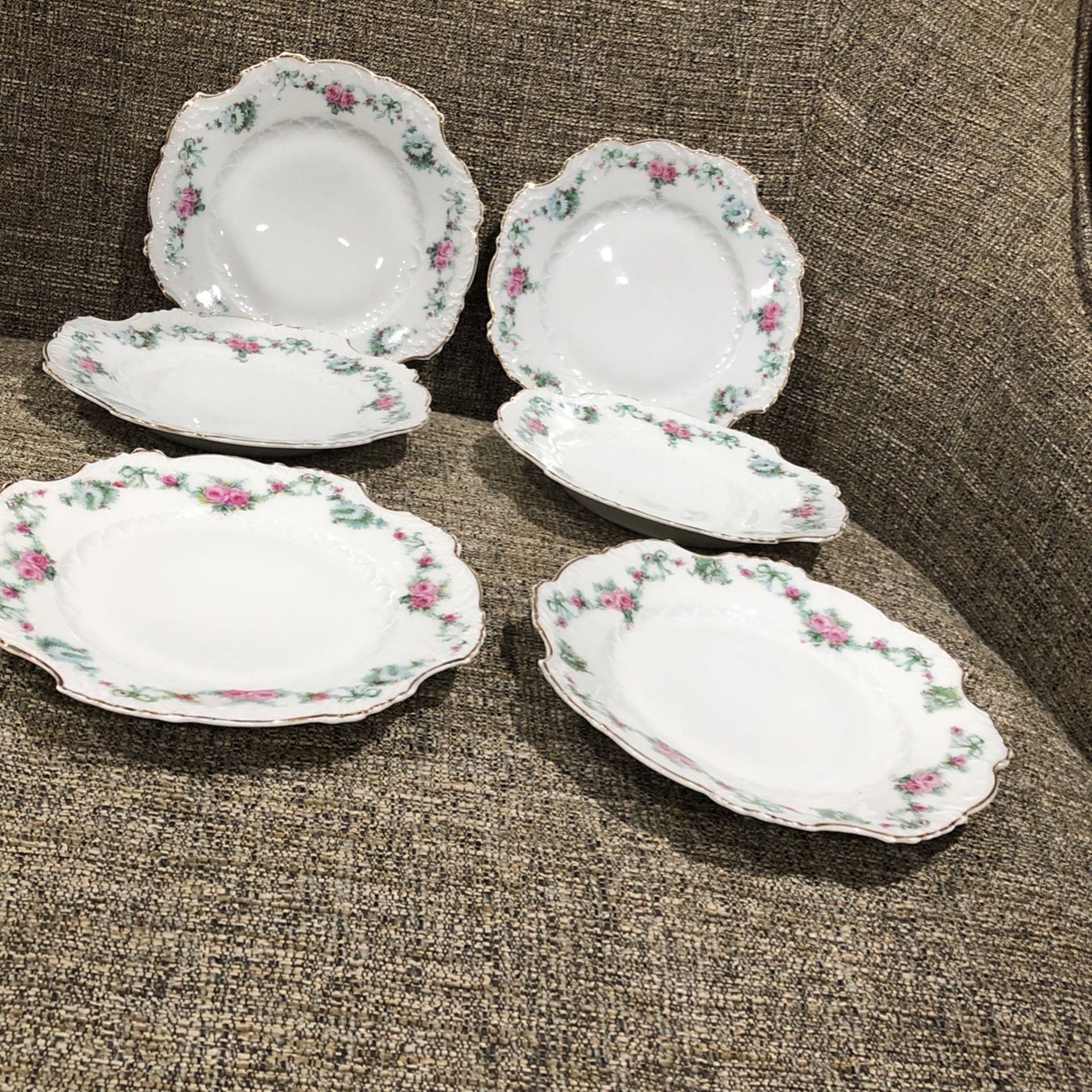 Vintage Set Of 6 Plates Porcelain Floral Germany
