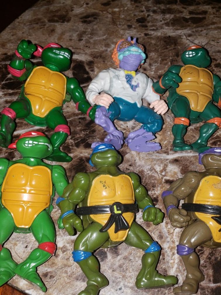 This is a lot of 6 tmnt figures that come in good used condition, donny, mikey, Leo, Ralphie