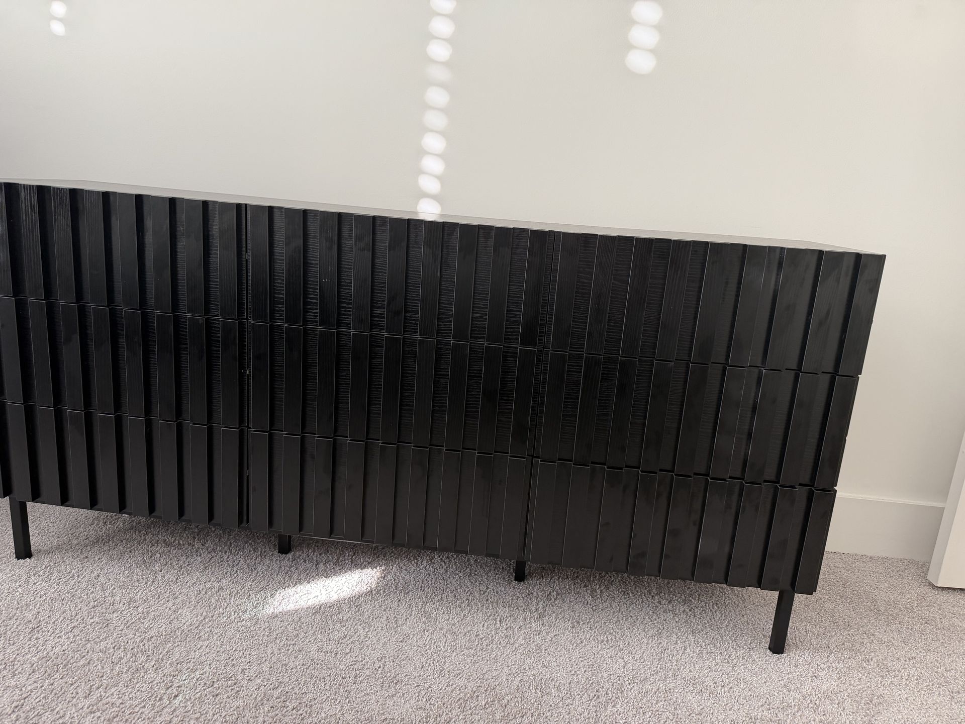 Sevyn 9-Drawer Dresser – Black (Wayfair) Modern and sleek 59.1” wide 9-drawer dresser purchased from Wayfair (Sevyn Collection). Features a stylish fluted front design with a matte black finish and sturdy legs. Offers plenty of storage space and works perfectly in a bedroom, guest room, or apartment. In great condition and well maintained. Selling due to redecorating. Message me if interested! Willing to negotiate