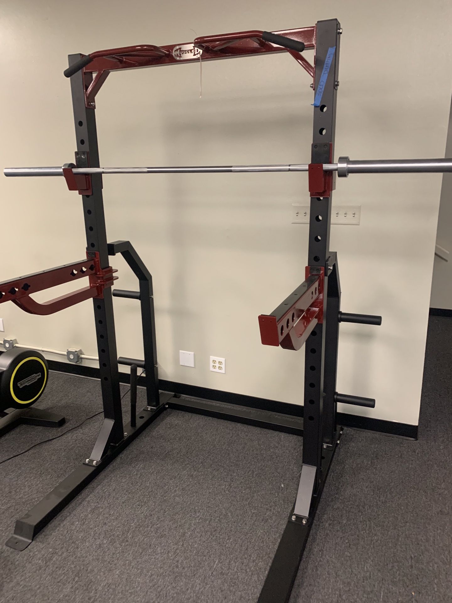 Complete with multiple chin up options dip bar adjustable Olympic bar storage plate horn storage Extremely stable