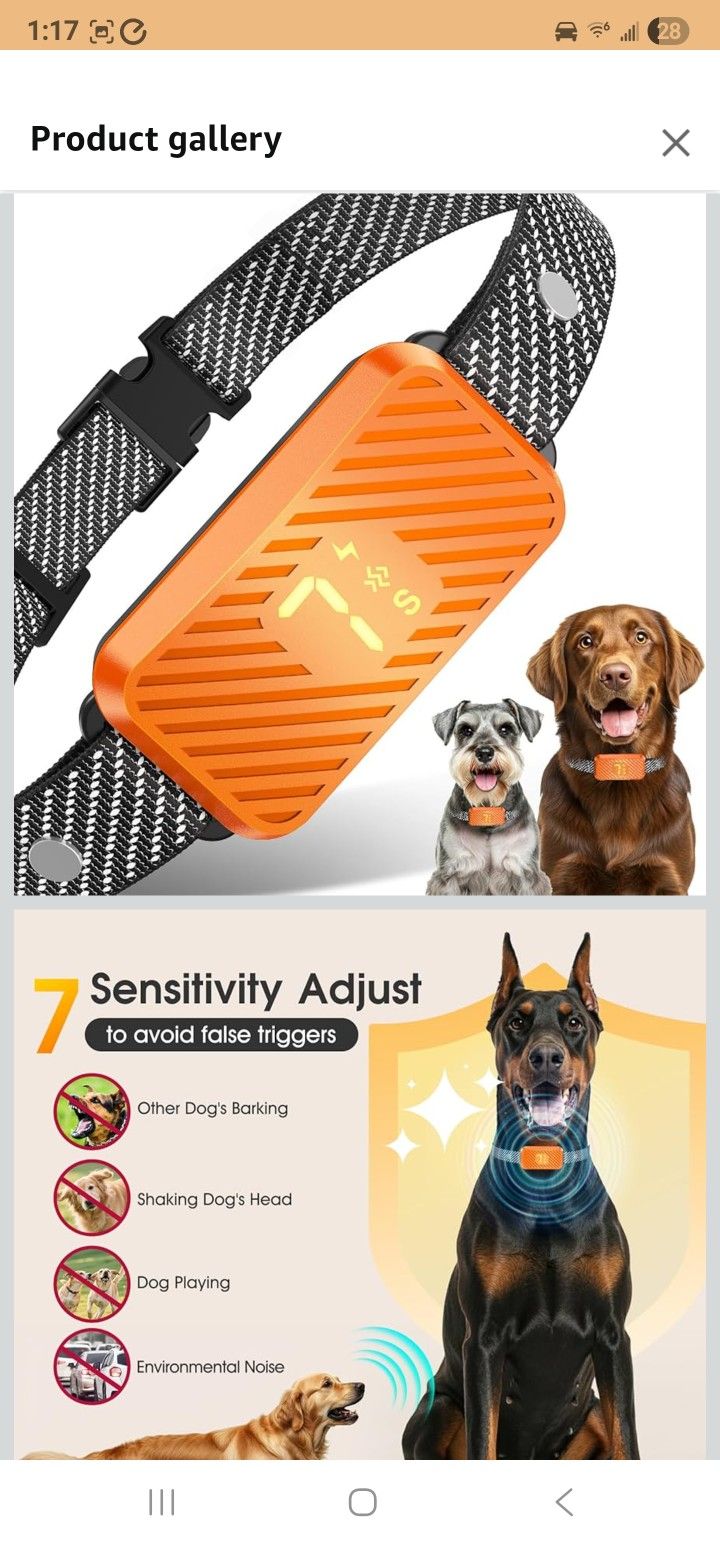 Dog Bark Collar for Large Medium Small Dogs, Effective No-Bark Collar, Smart Barking Collar, Rechargeable Bark Collar with 7 Sensitivity, 3 Modes, Wat