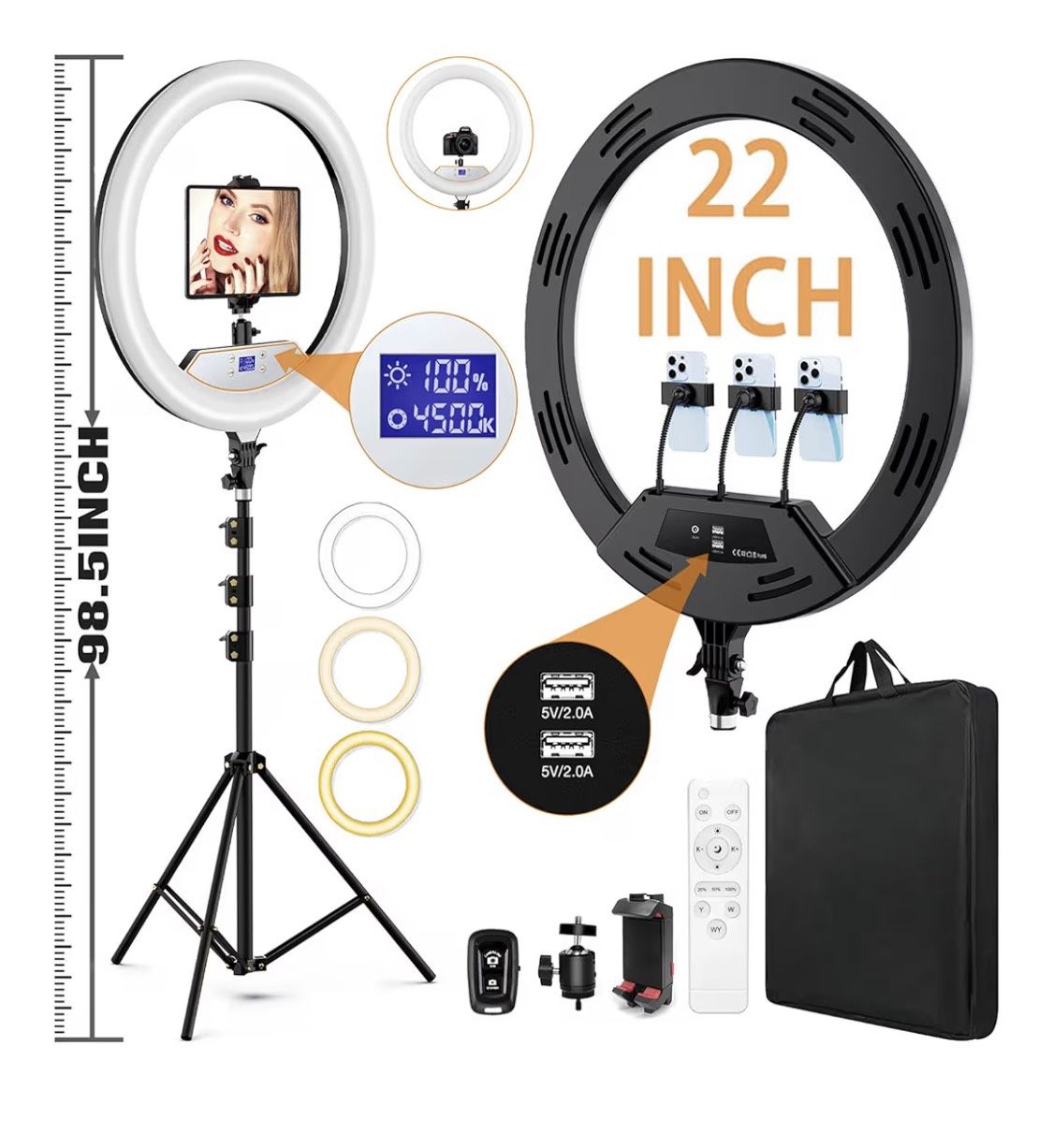 This is an extra large ring light you can use for an iPad phones whatever you like brand new never used still in the box in the plastic