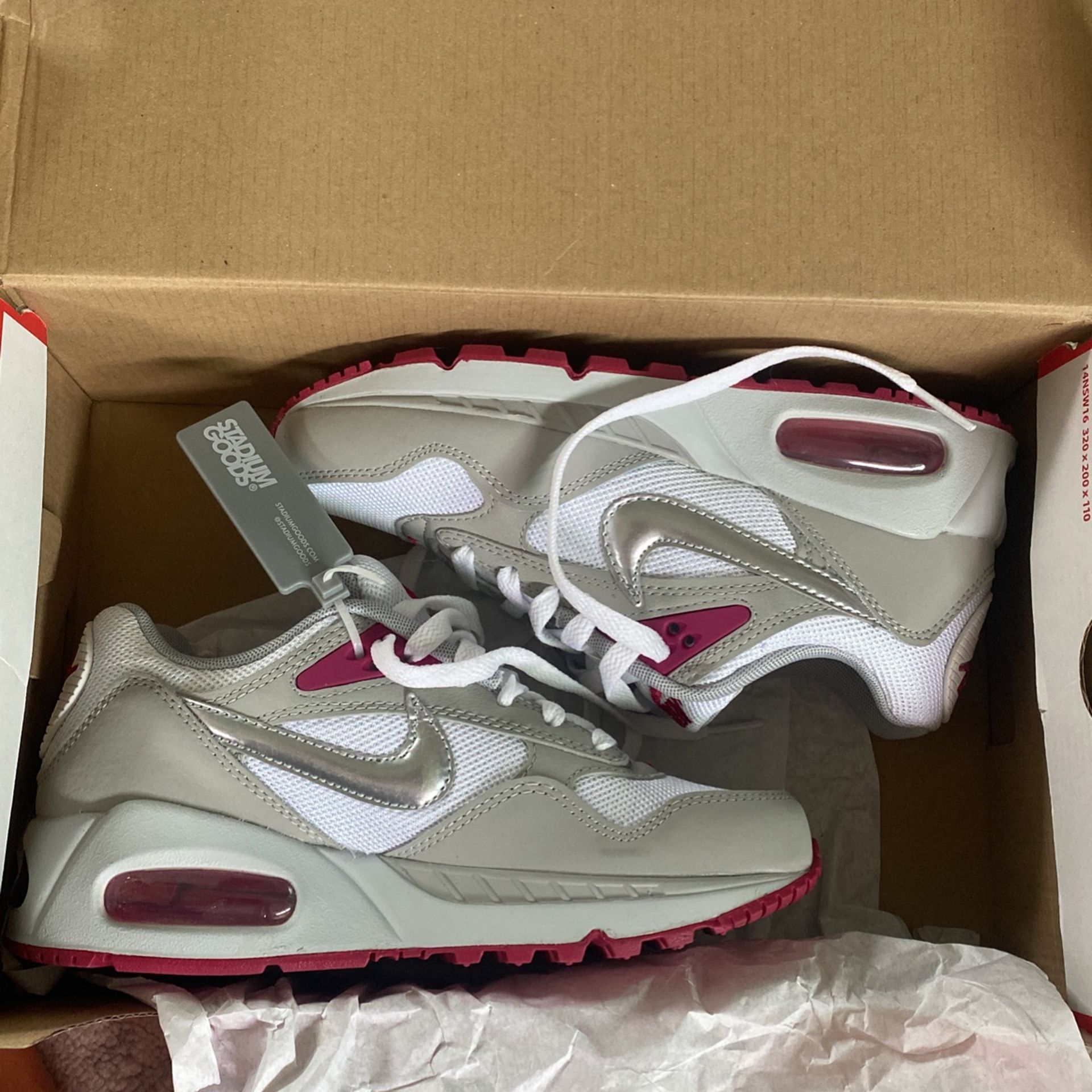 Brand new, ordered the wrong size. Authenticated through stadium goods. Colors: white/metallic silver