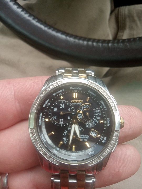 It has 36 diamonds that go around the outside and multiple things for your time . It's a great watch and always tells me the correct time