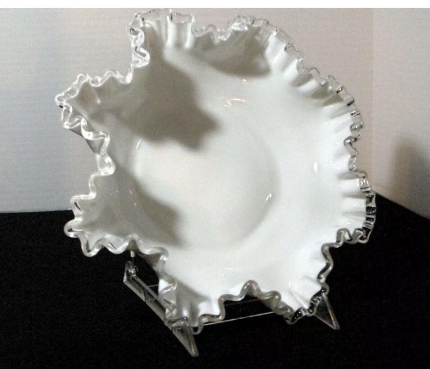 Vintage Fenton 8"Ruffled Edge Silver Crest Milk Glass Bowl. Beautiful! Great Condition.